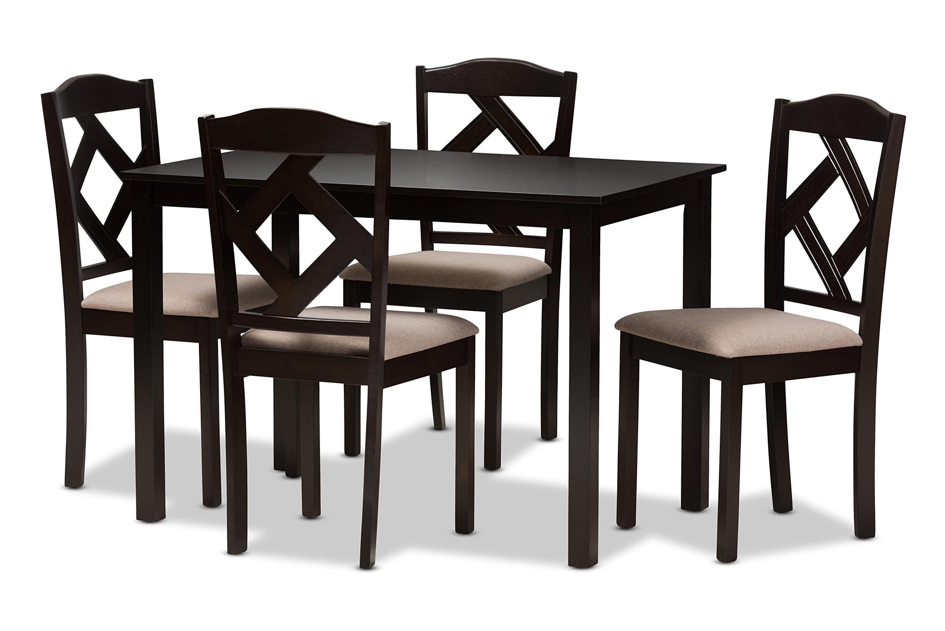 Ruth Dining Set and Dining Set Beige Fabric Upholstered and Dark Brown Finished 5-Piece