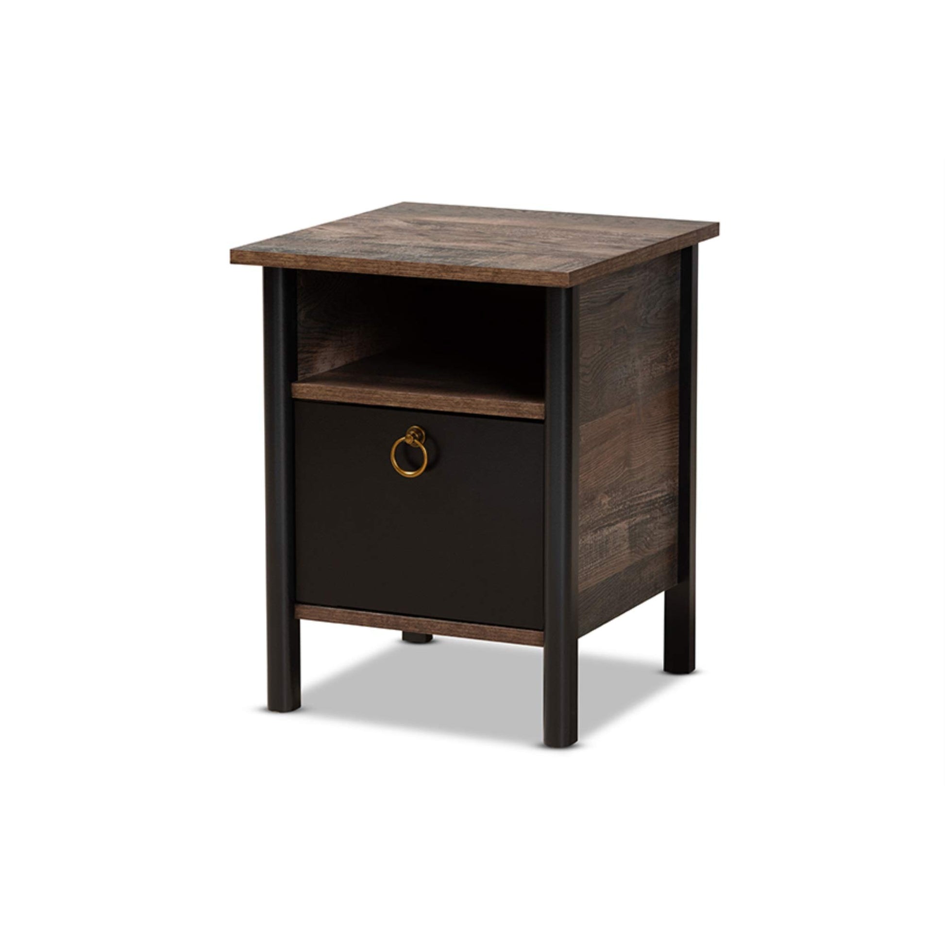Two-Tone Rustic Brown and Black Finished Wood Nightstand