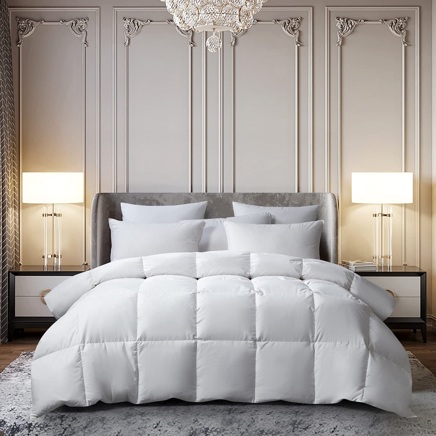 All Season White Down and Feather Comforter-Medium Weight with Corner Tabs, King