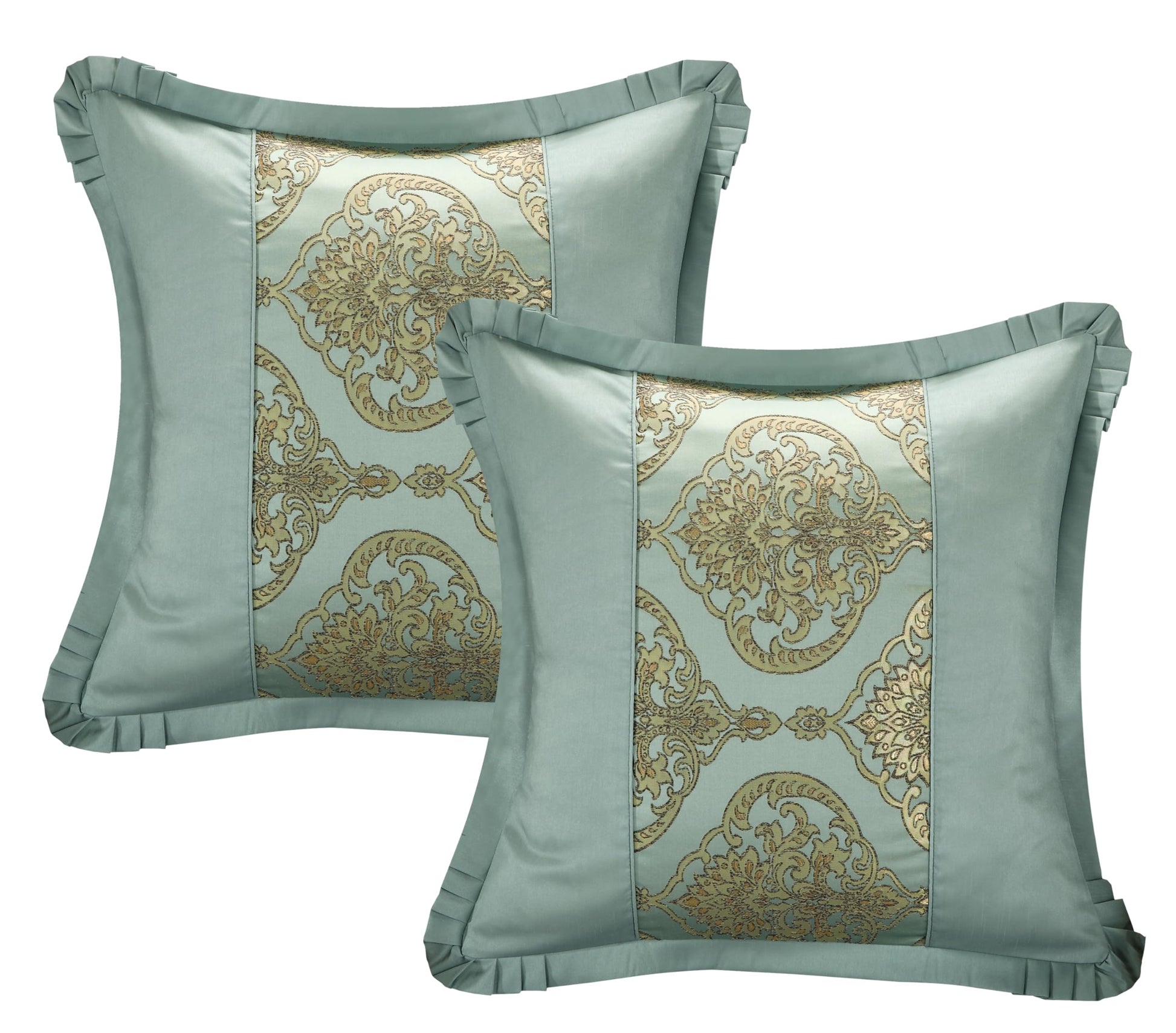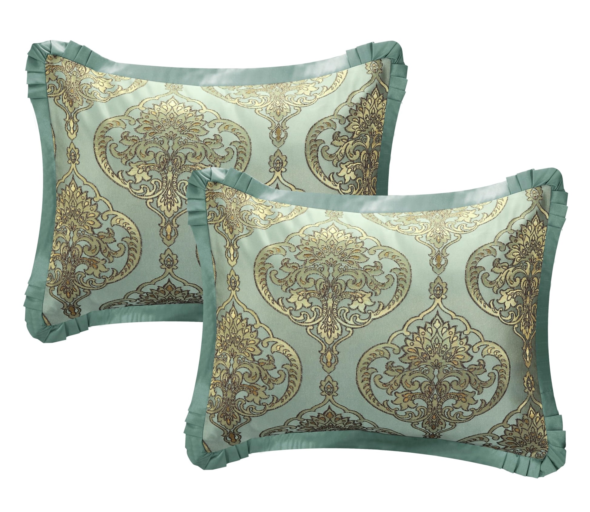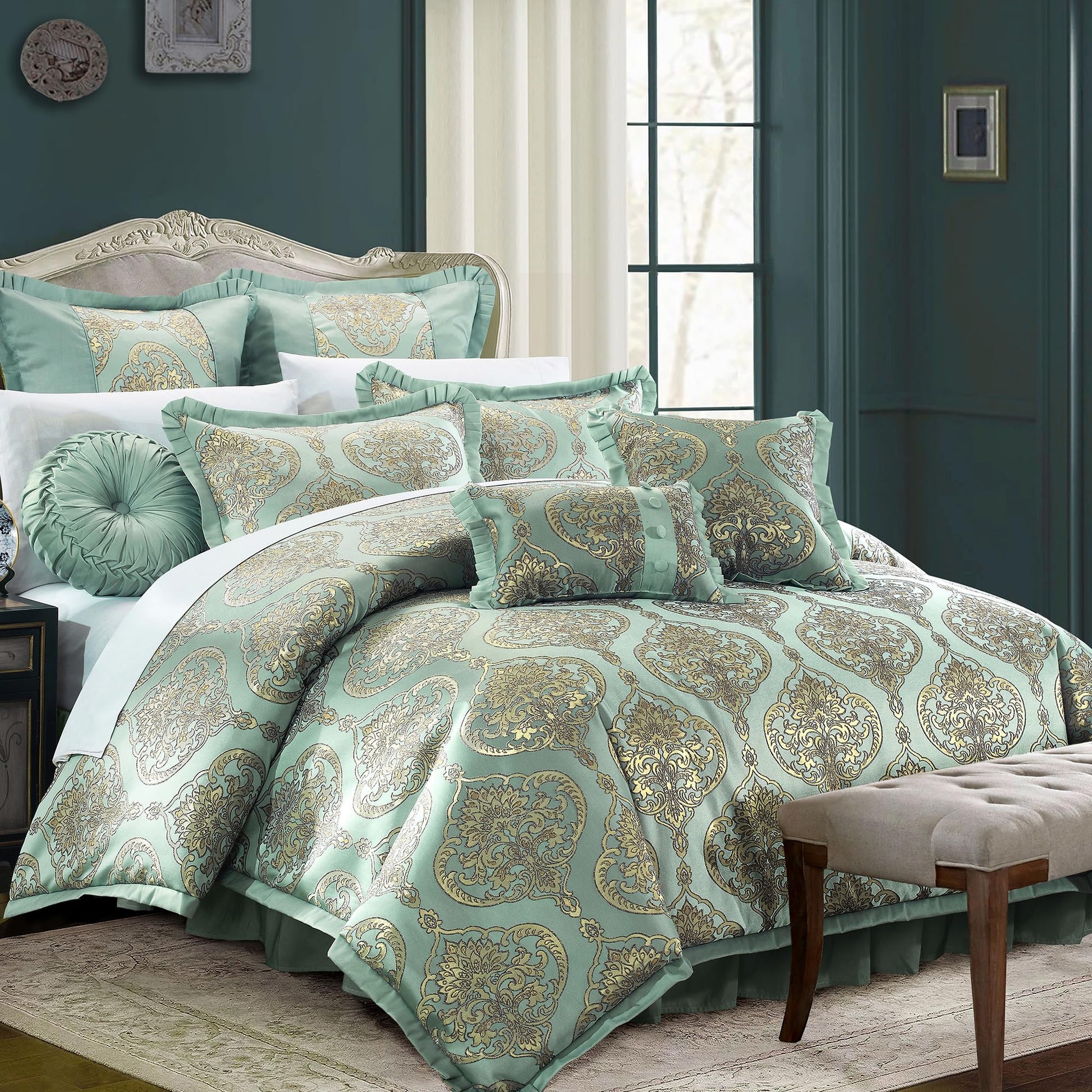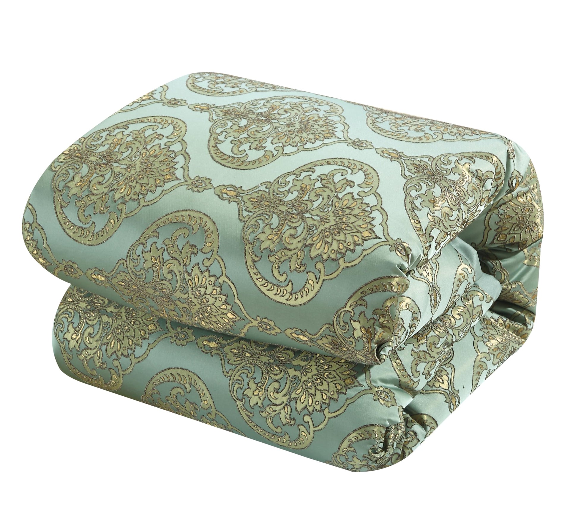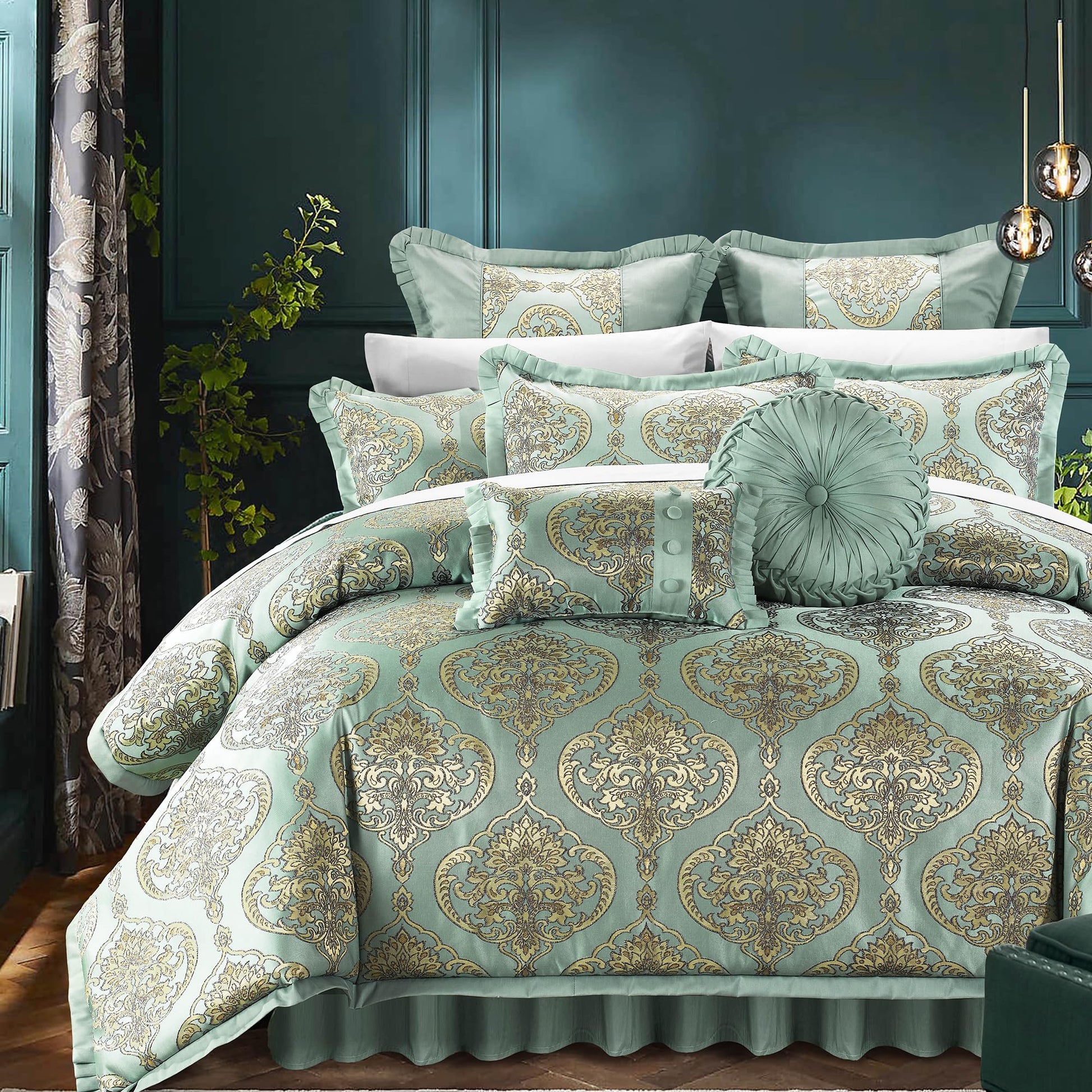 Jacquard Comforter Set Queen Size, 9 Pieces Luxurious Royal Comforter Bed in a Bag All Season (Green,Queen)
