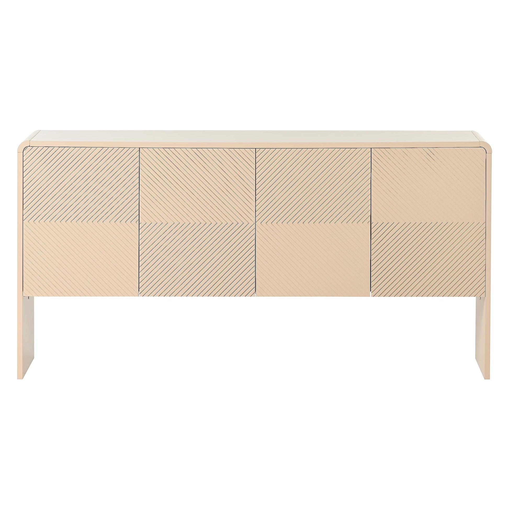 - Eye-Catching Details The fluted details of 4 doors of the sideboard add some textural interest without creating unnecessary bulk and clutter in your interior. The harmoniously rounded edges of the sideboard create a soft silhouette fostering a sense of peace and serenity, and help to protect your children and the elderly with no sharp corners. The side panel and leg of the sideboard are integrated, not only saving space, but also bringing peace of mind to families with