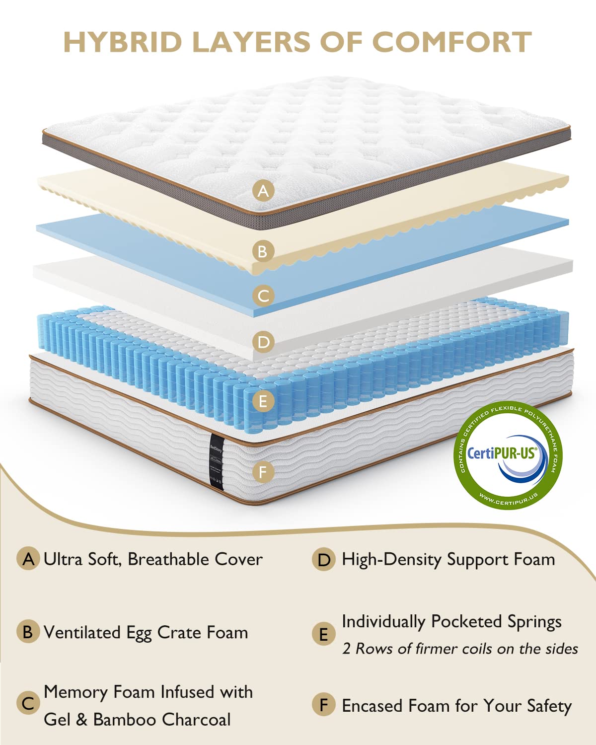 - 12-inch hybrid mattress king with spring coils and memory foam