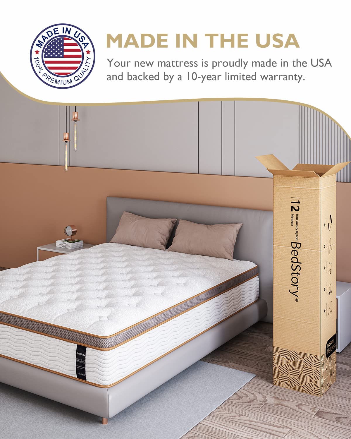 King Mattress - Made in USA - 12 Inch Hybrid Mattress Medium Firm, Individually