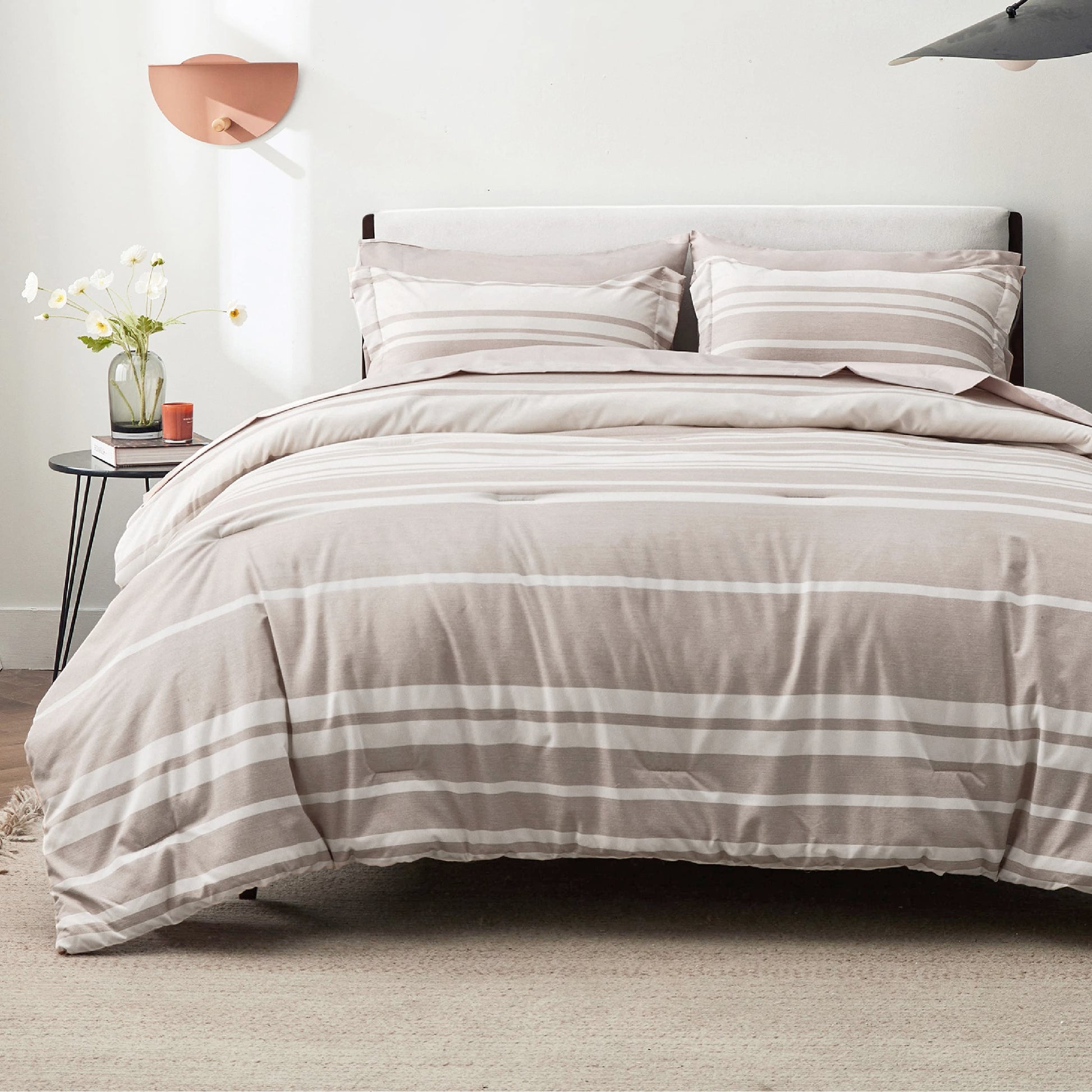 - Elegant Design: The stripe pattern on this bed-in-a-bag set conveys a modern minimalist appeal that coordinates with various home decor styles, adding more aesthetic and coziness to your bedroom.