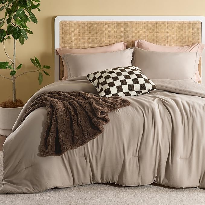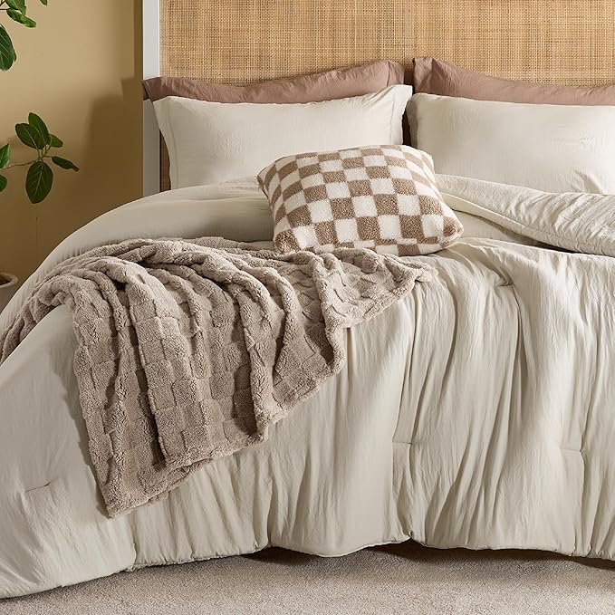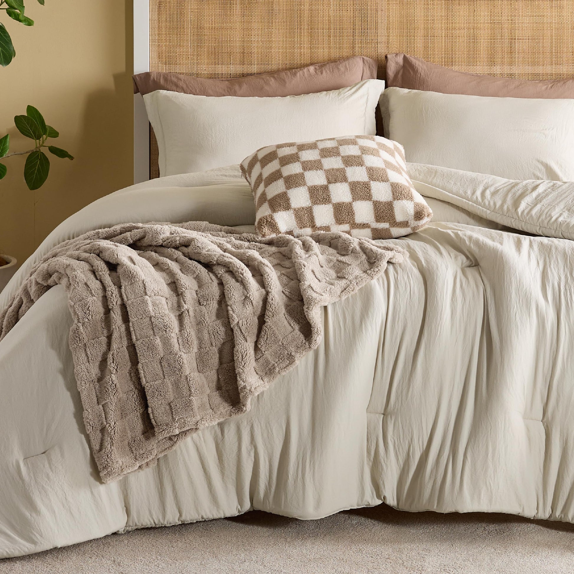 Comforter Queen Size 5 Pieces - Queen Size Comforter Set with Checkered Throw