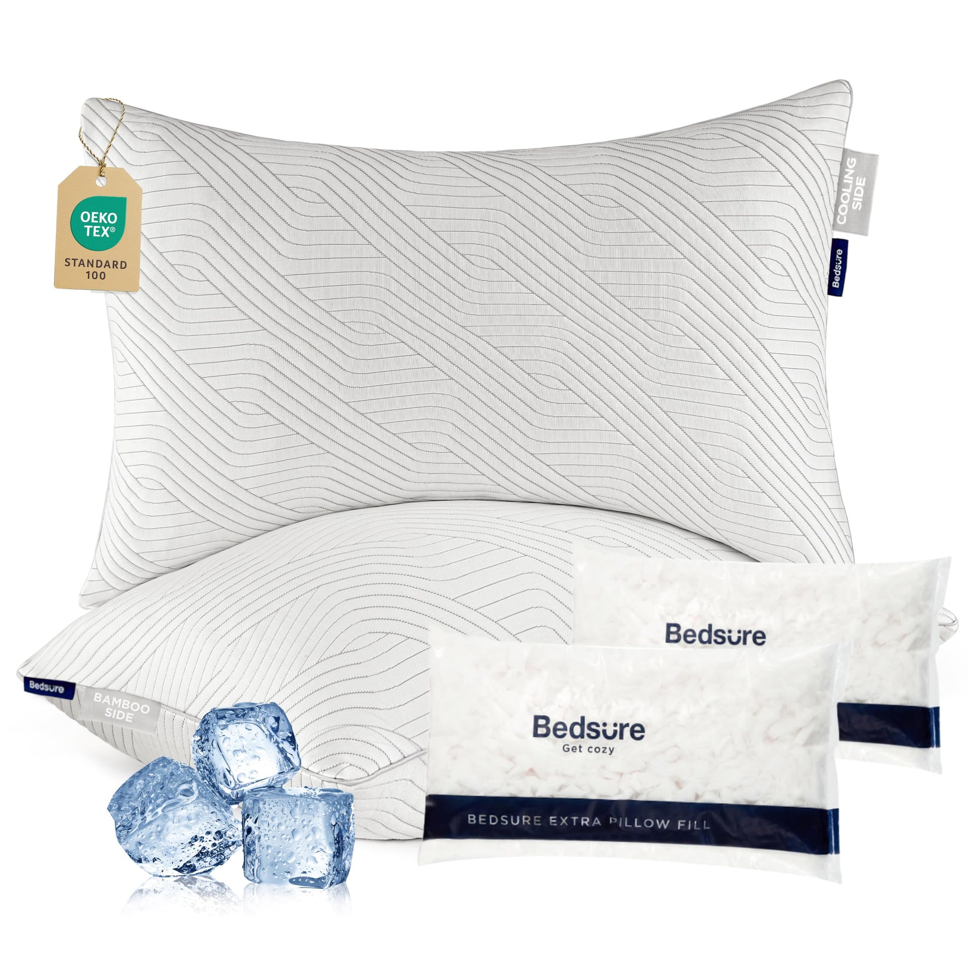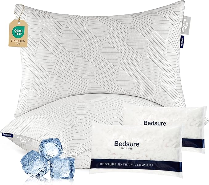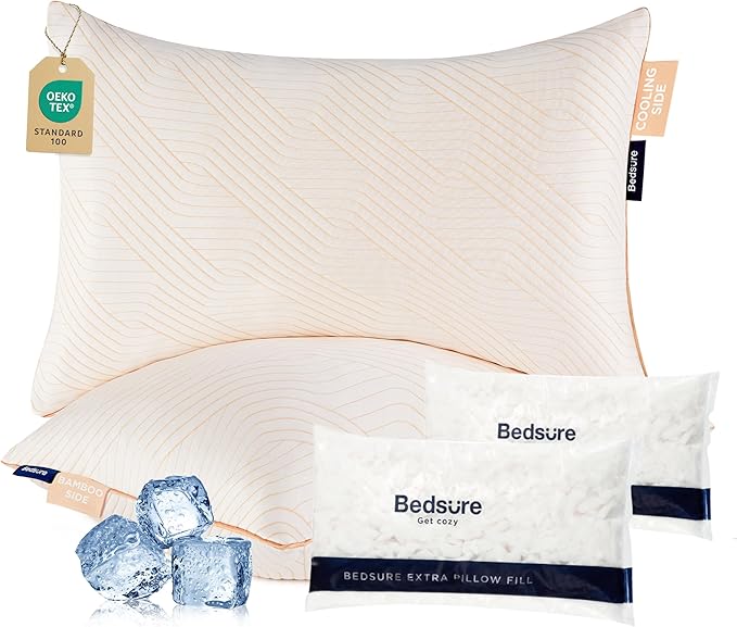 - Dual-Sided Design for Year-Round Comfort: The firm pillows queen size set of 2 (19" x 28") feature a reversible design. One side is made with Bedsure’s cooling PE fabric for a refreshing, cool touch, while the other side uses breathable rayon fabric from bamboo for enhanced airflow. This versatile design keeps you comfortable in any season
