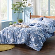 7 Pieces Blue Floral Bedding Sets Queen Bed in a Bag