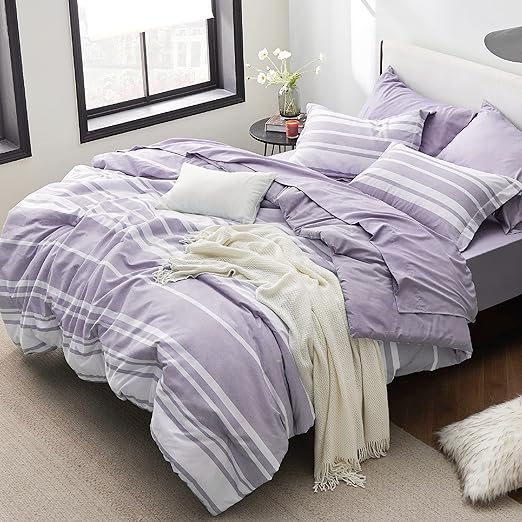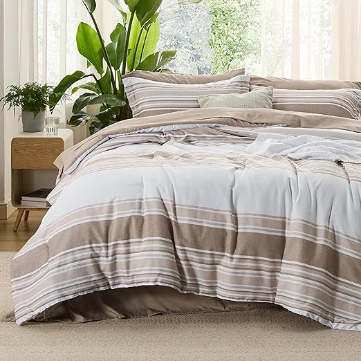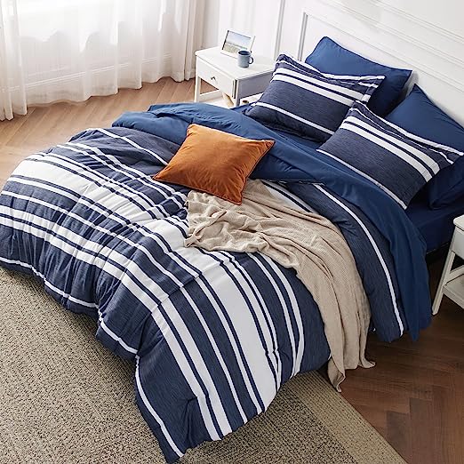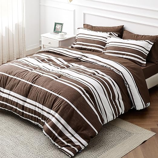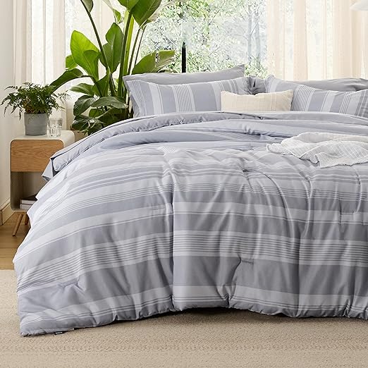 - Elegant Design: The stripe pattern on this bed-in-a-bag set conveys a modern minimalist appeal that coordinates with various home decor styles, adding more aesthetic and coziness to your bedroom, a great gift for women and men.