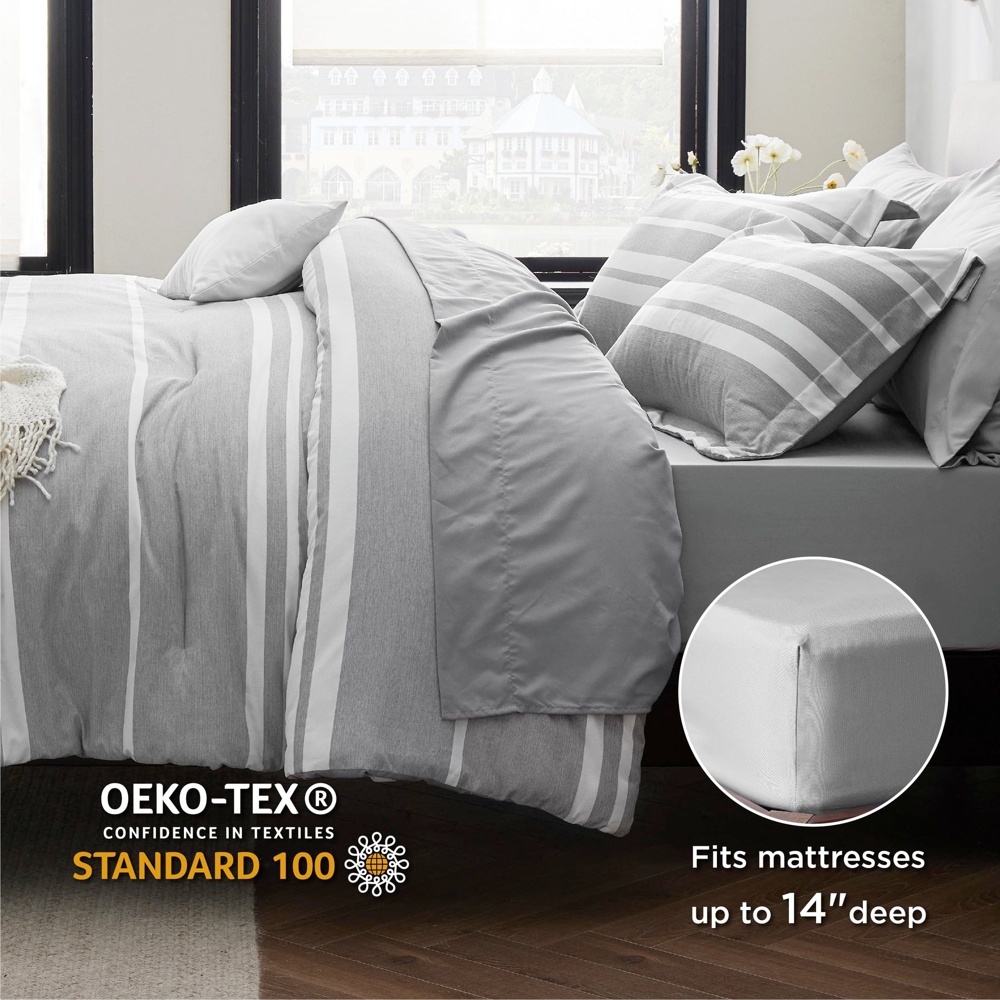 - Elegant Design: The stripe pattern on this bed-in-a-bag set conveys a modern minimalist appeal that coordinates with various home decor styles, adding more aesthetic and coziness to your bedroom.