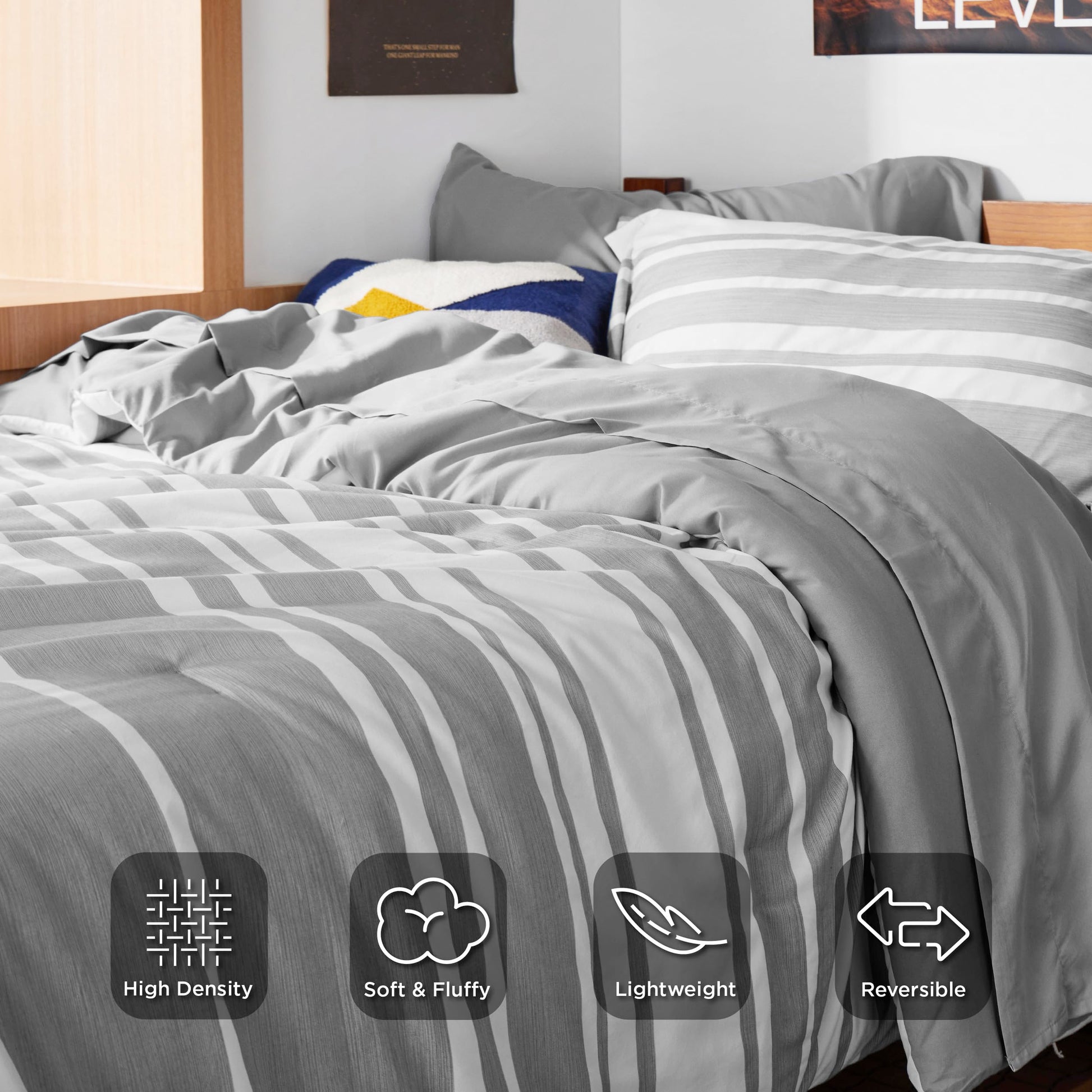 Bedsure Twin Comforter Set 5 Pieces, Gray White Striped Twin Bedding Sets All Season Bed Set, Twin Bed in a Bag with Comforter, Sheets, Pillowcase & Sham