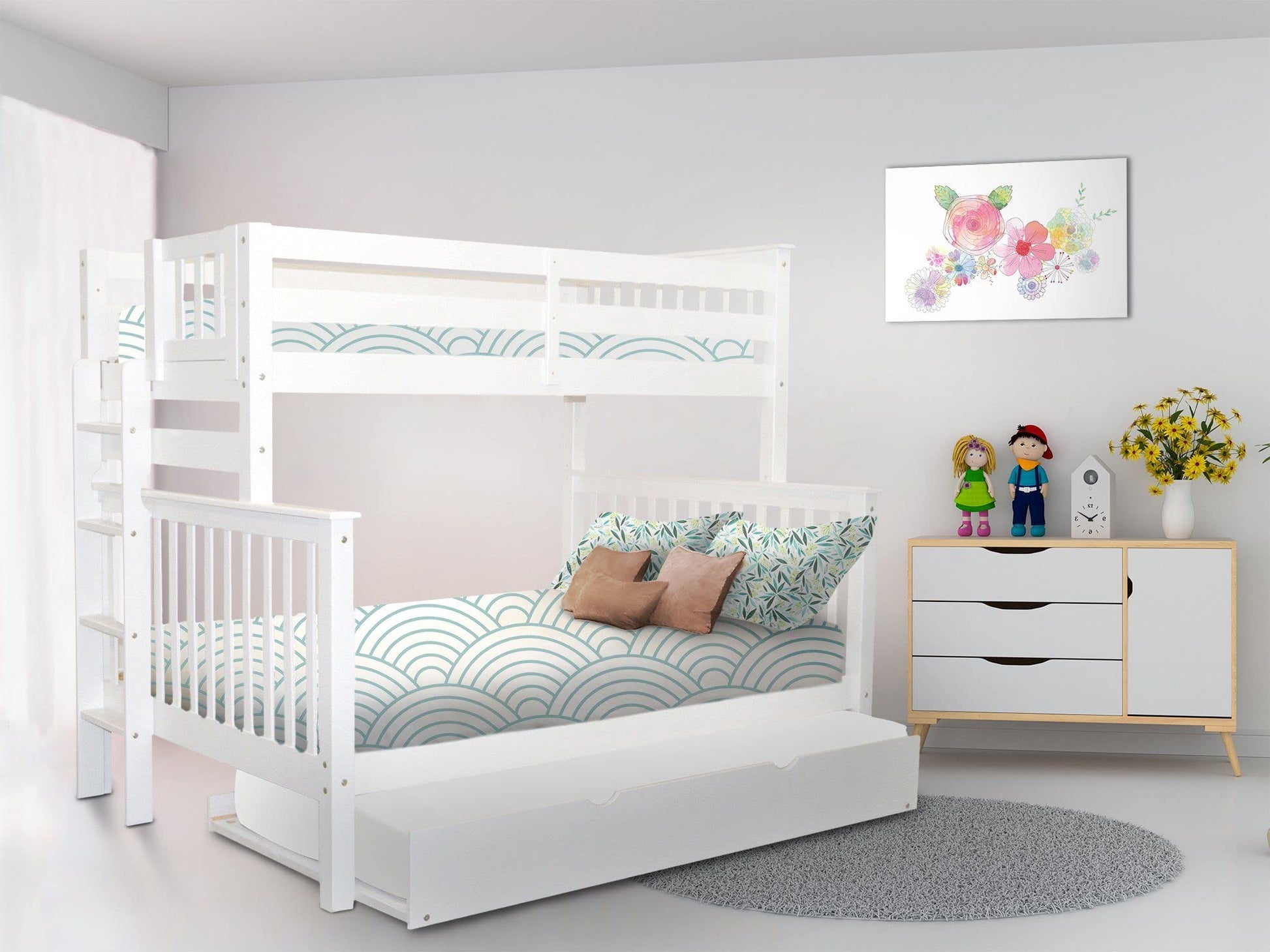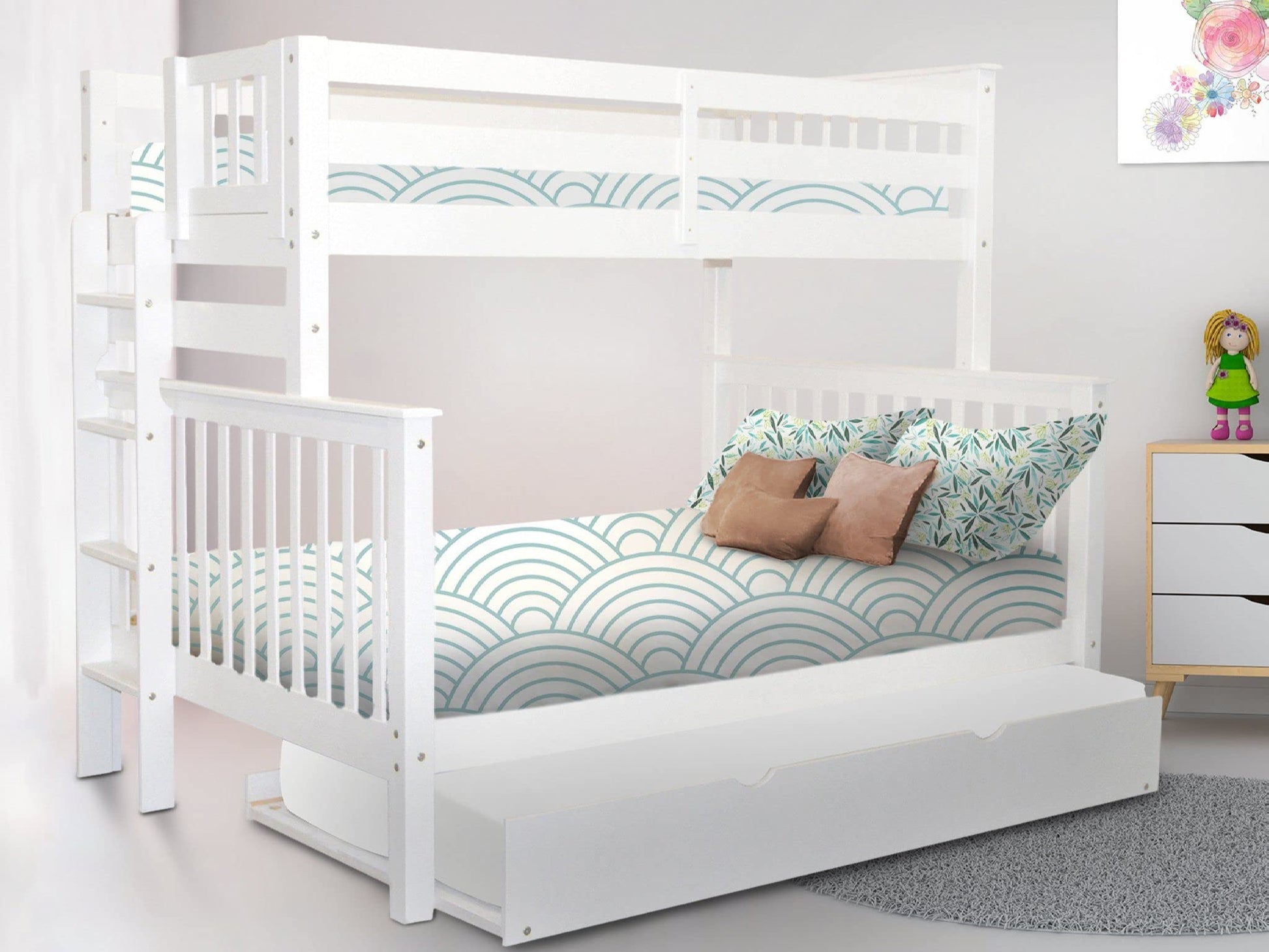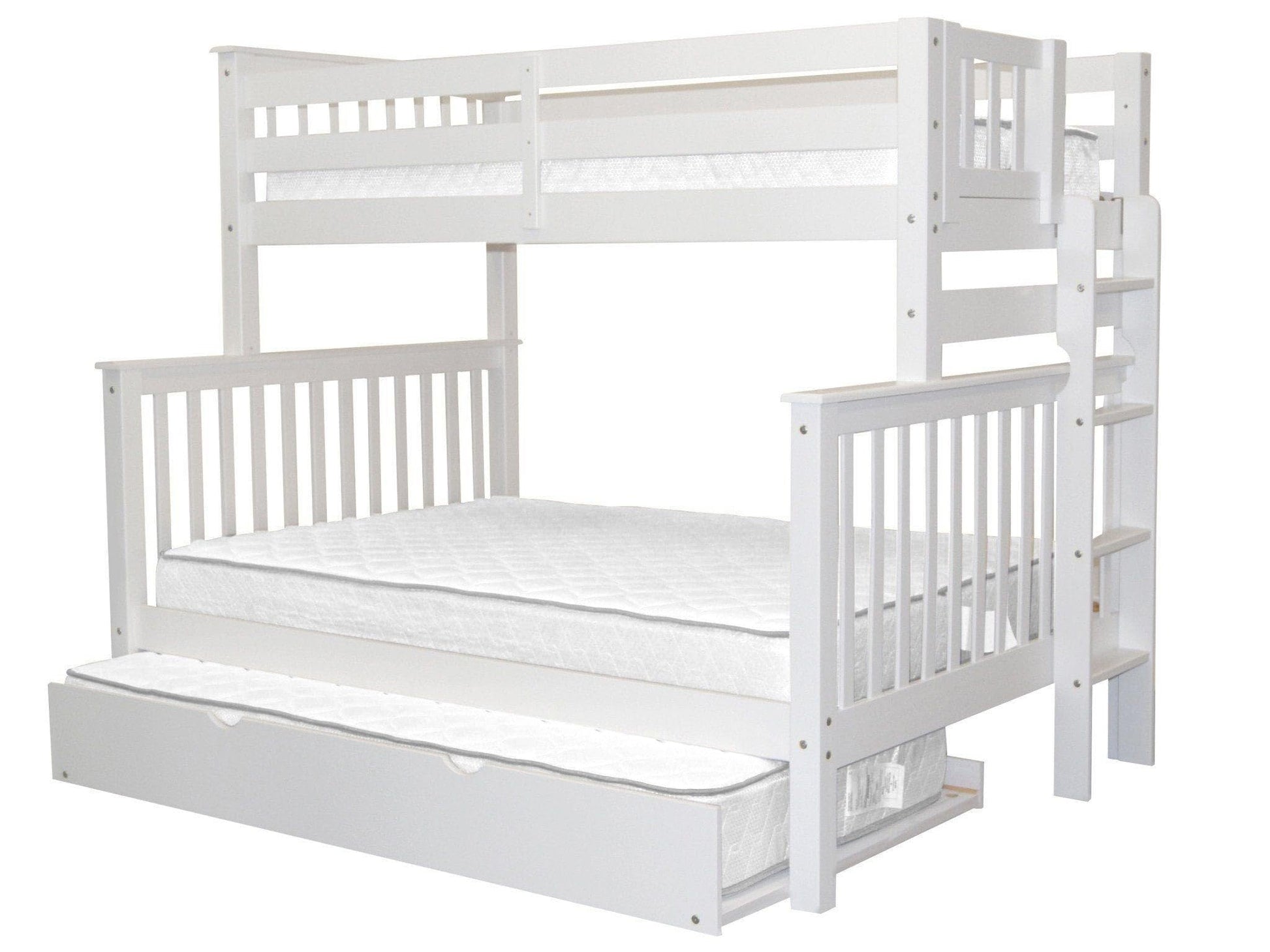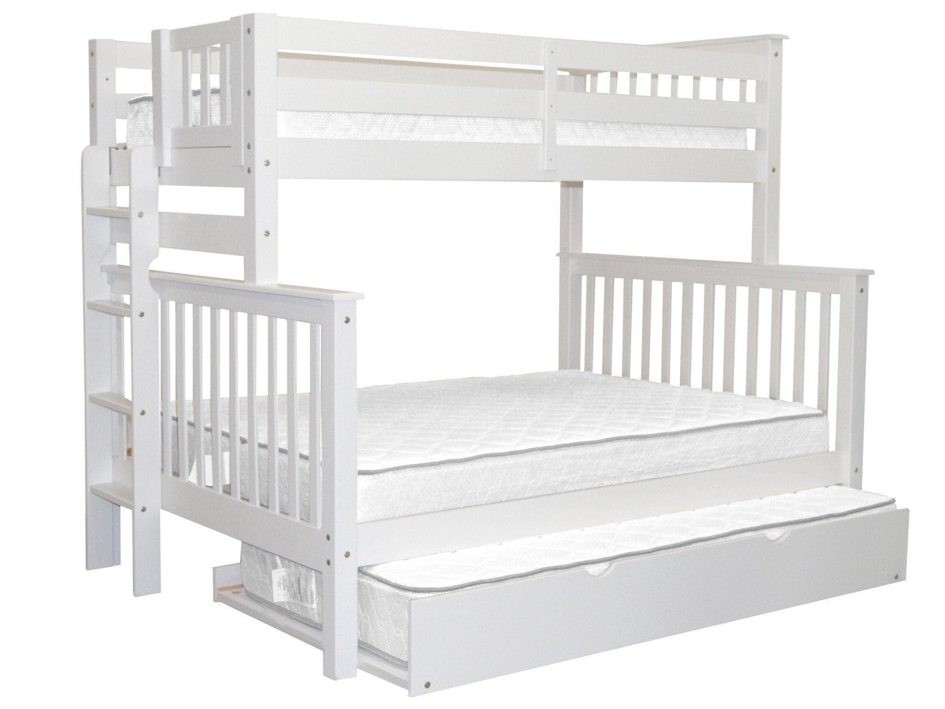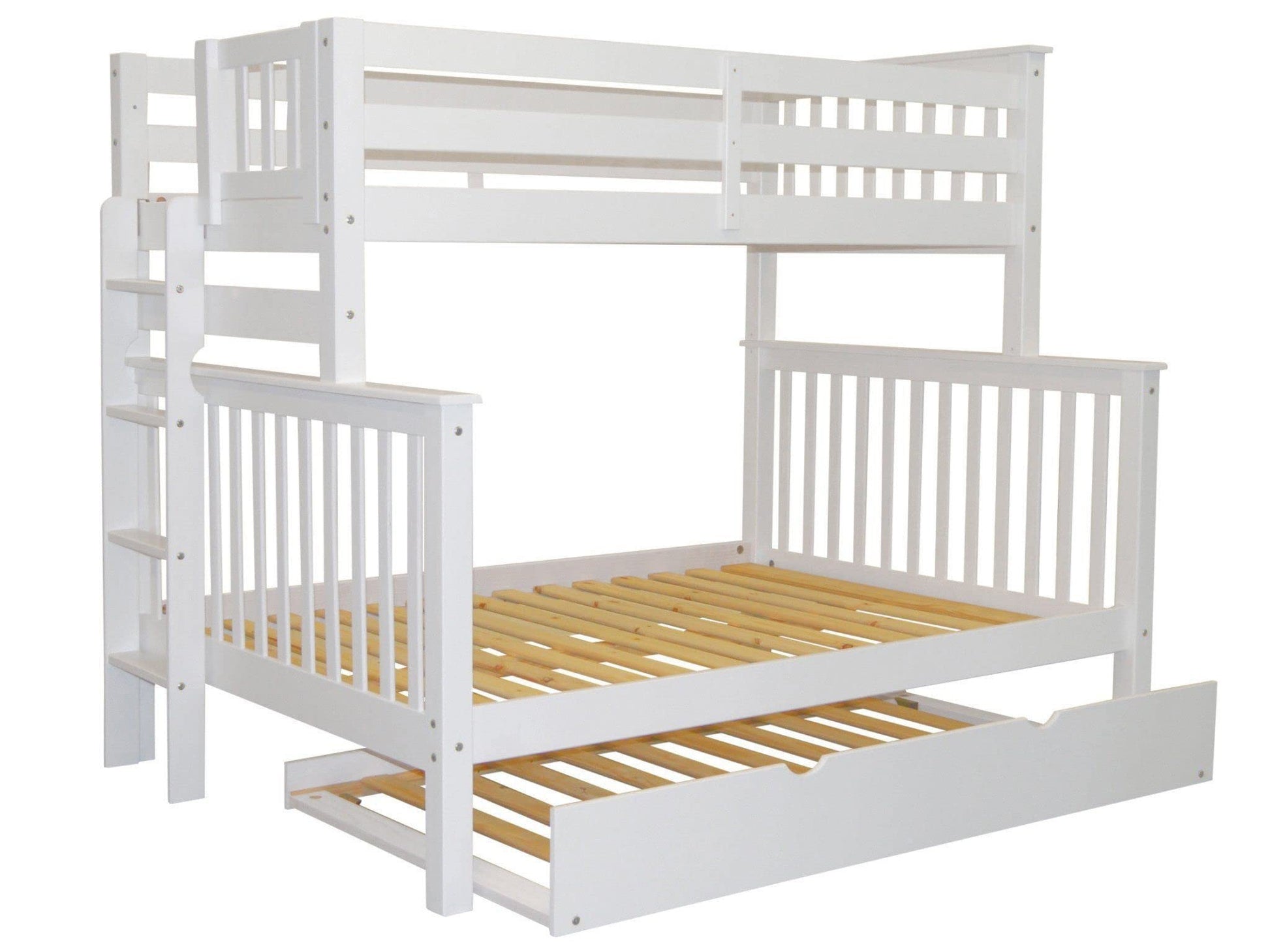 BK961EL-Trundle Bunk Bed, Twin over Full, White
