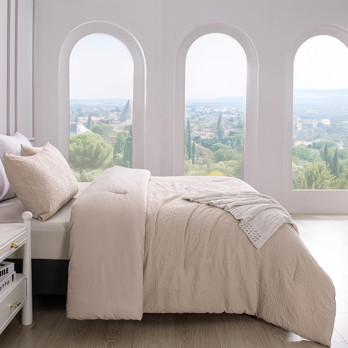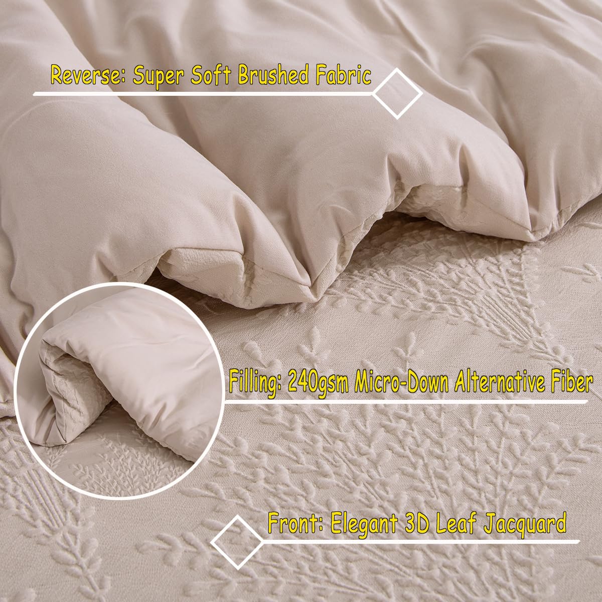 Transform your bedroom into a luxurious retreat with this elegant beige jacquard comforter set. Featuring intricate leaf patterns and bohemian-inspired design, this all-season bedding combines timeless style with exceptional comfort.