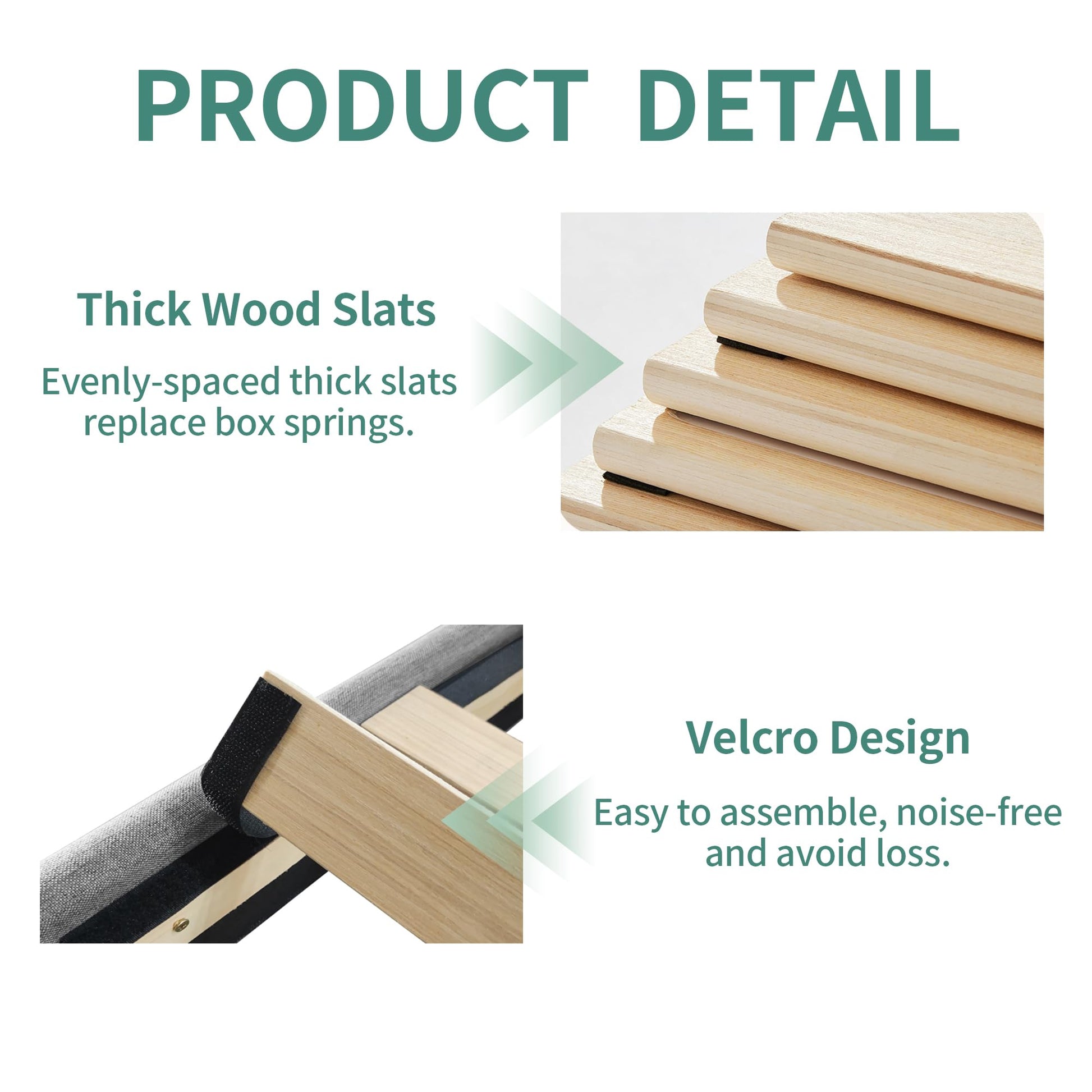 - Robust ConstructionThe bed frame boasts a solid structure with durable wooden slats and center support legs, ensuring stability and a high load-bearing capacity. This well-crafted upholstered bed frame is built to last, providing many years of reliable use. Maximum weight capacity up to 900 lbs.
