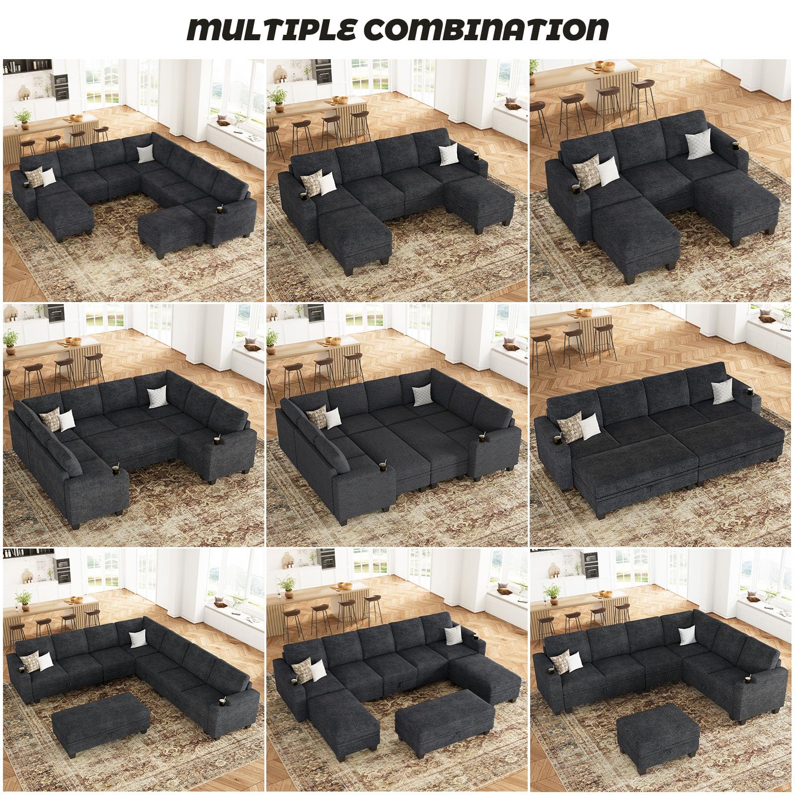 - Each piece of modular sectional sofa couch can be reassembled freely, allowing you to create your desired seating arrangement according to your space. Whether you prefer lounging on an L shaped couch or hosting guests on a spacious U shaped sectional couch, the options are limitless.
