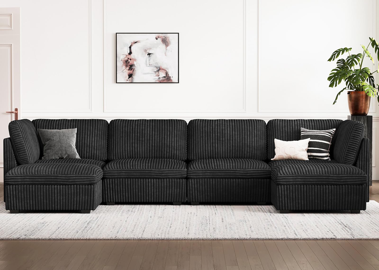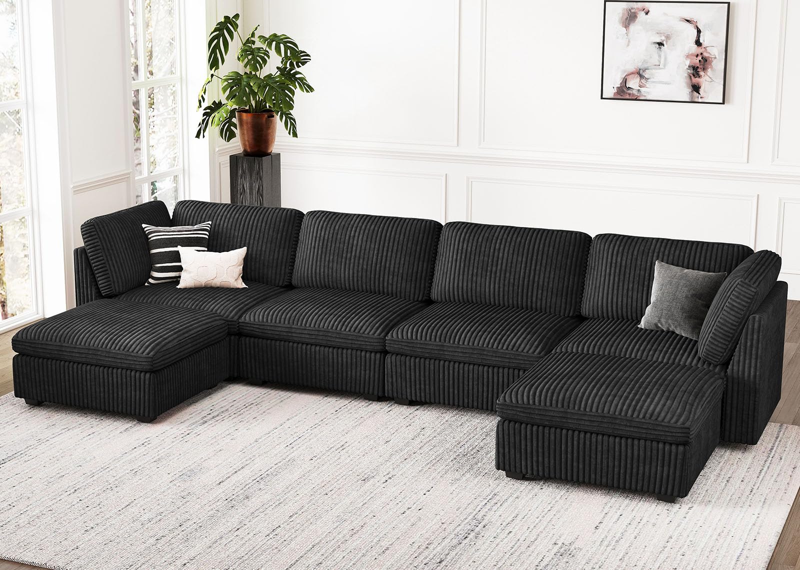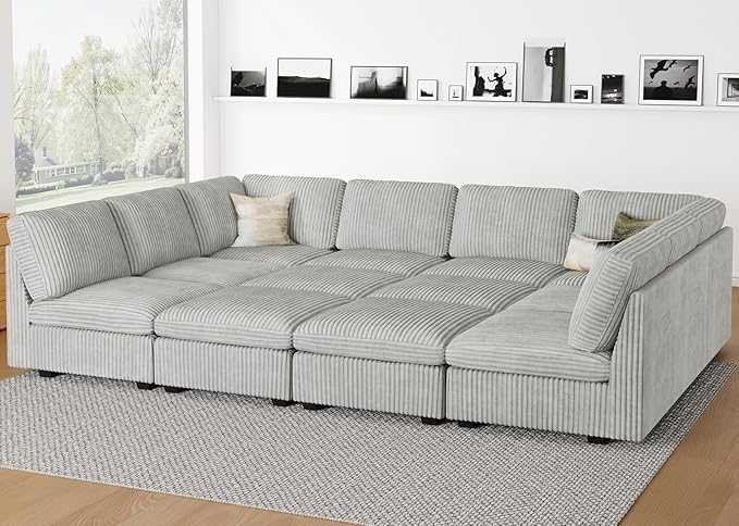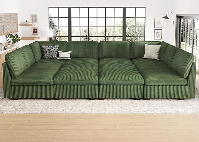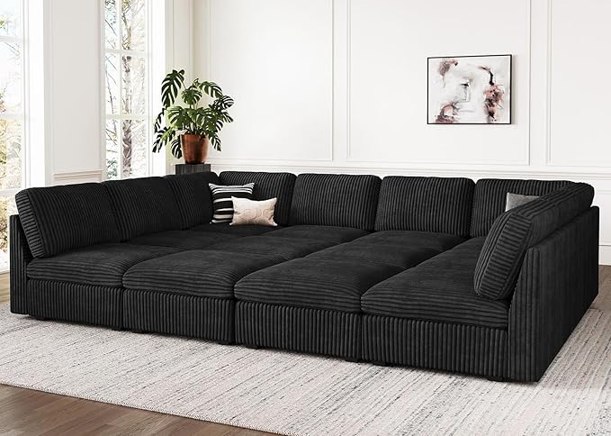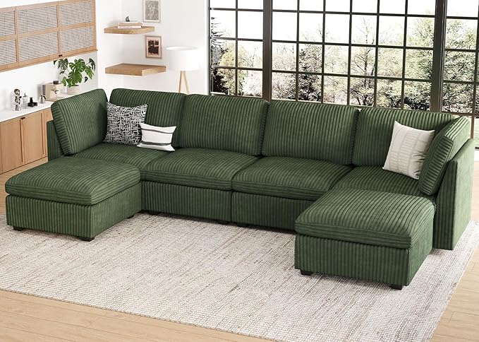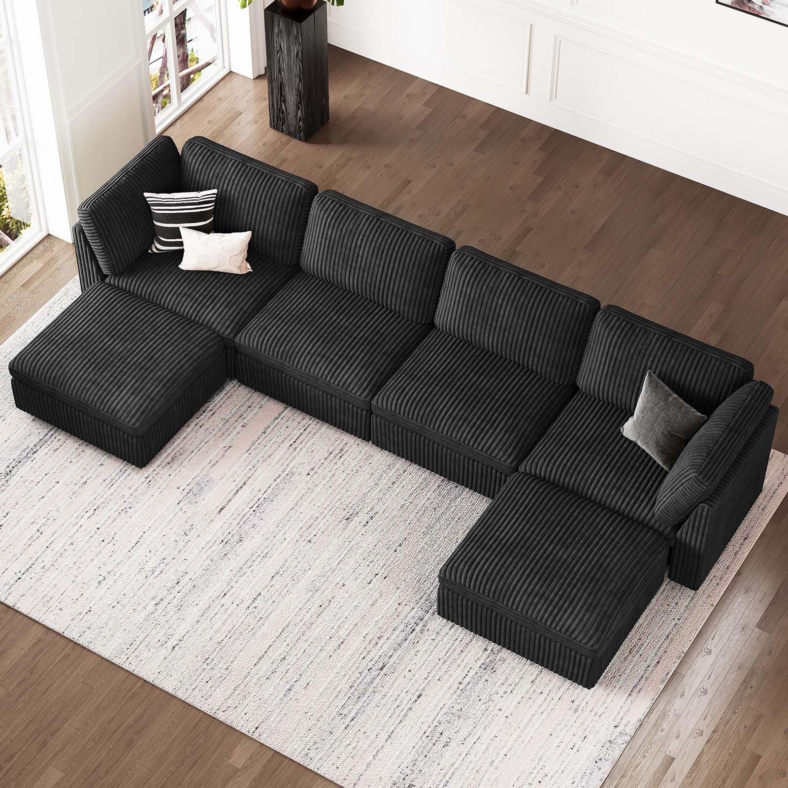 Oversized U Shaped Modular Sectional Sofa 6 Seat Corduroy Cloud Modular Couch