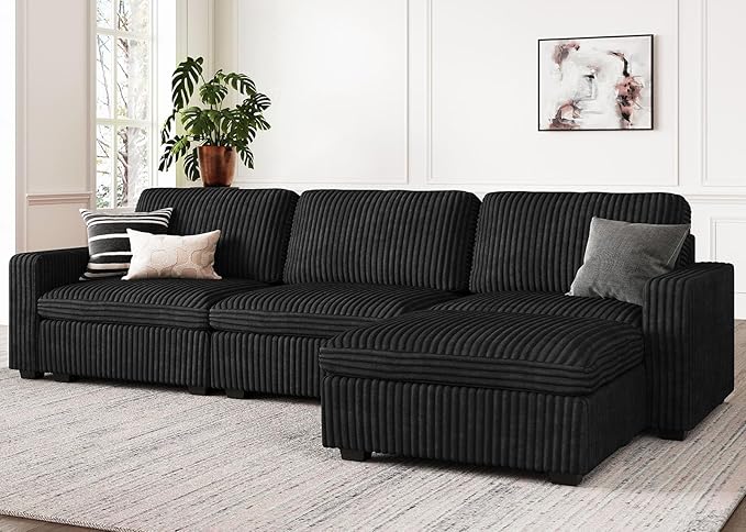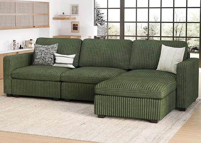 - Soft and Skin-Friendly Corduroy Fabric: The sectional couch is covered in a luxuriously soft corduroy fabric that's not only pleasing to the touch but also gentle on the skin. This material is easy to maintain. Plus, all the sofa covers are removable and washable, making it a breeze to keep your couch looking fresh and clean.