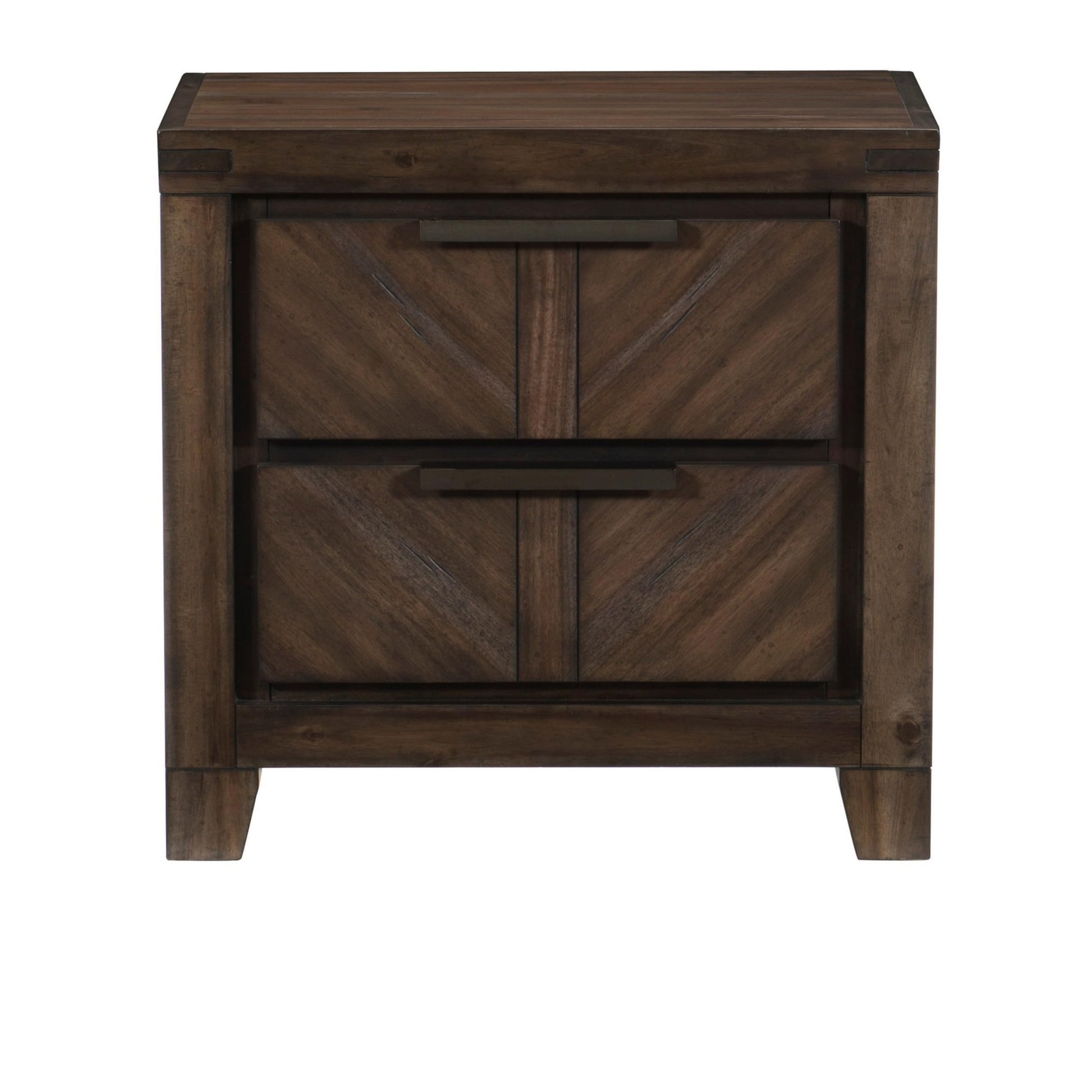 2 Drawer Wooden Nightstand with Antique Handles and Chamfered Feet, Brown