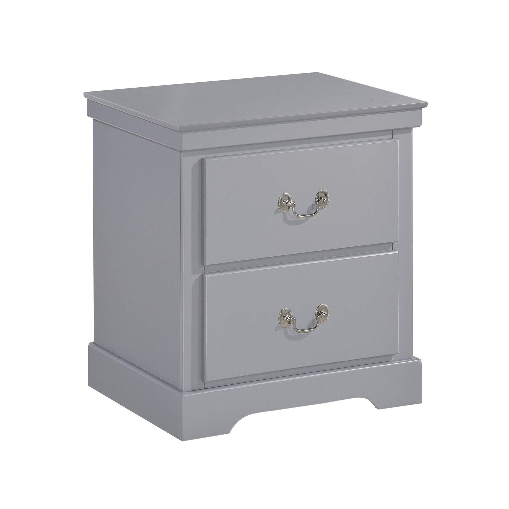 2 Drawer Wooden Nightstand with Metal Drop Handles and Bracket Feet, Gray