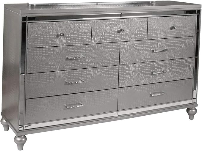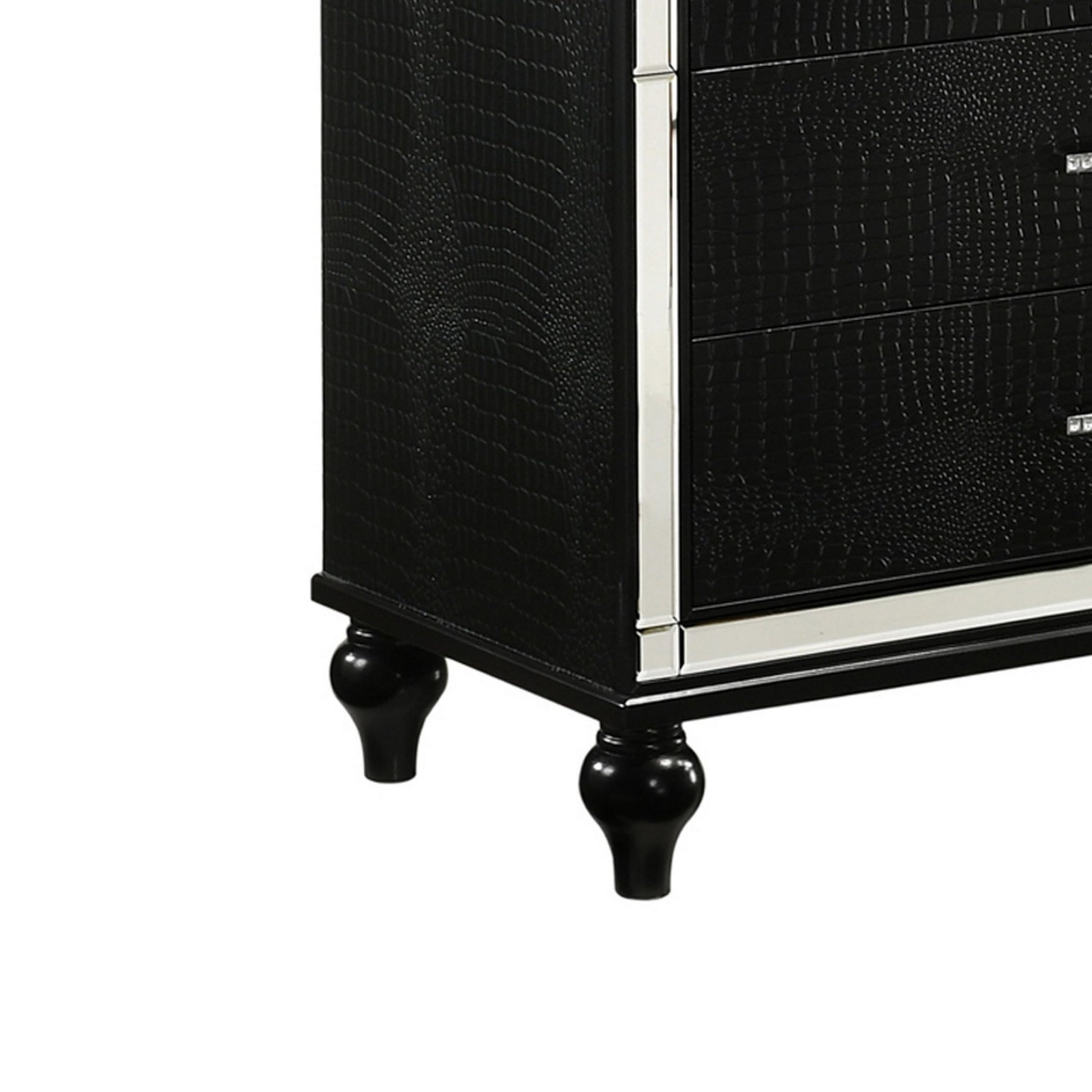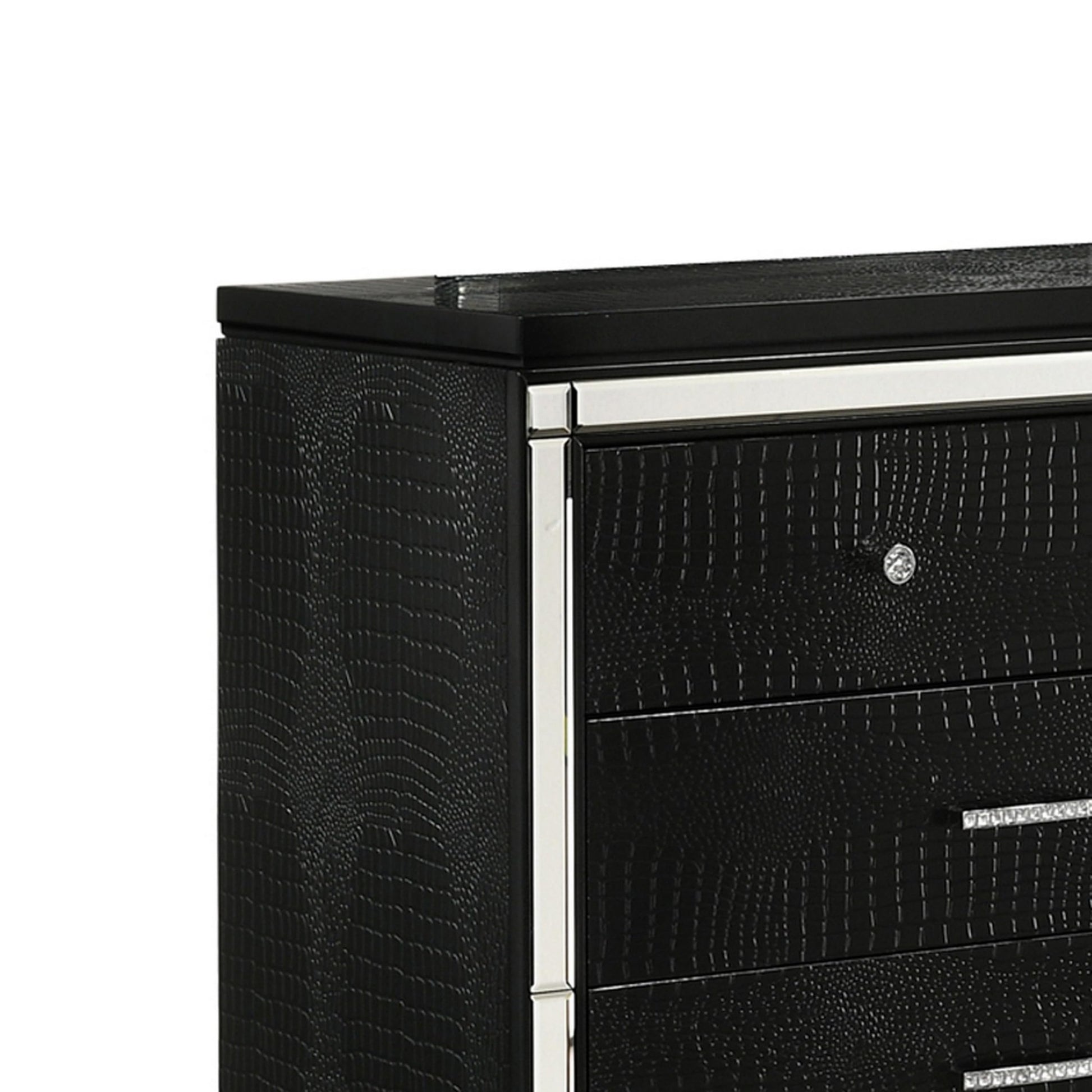 9 Drawer Wooden Dresser with Embossed Texture and Mirror Accents, Black
