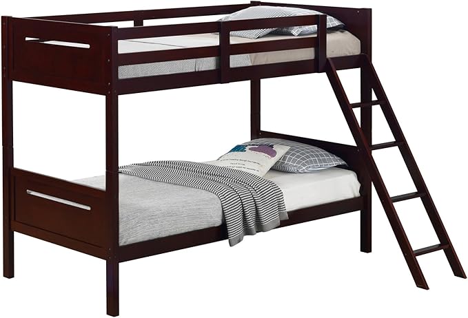 - Convertible for use as a bunk or as two separate beds and angled ladder makes climbing up easier for modern, farmhouse style.