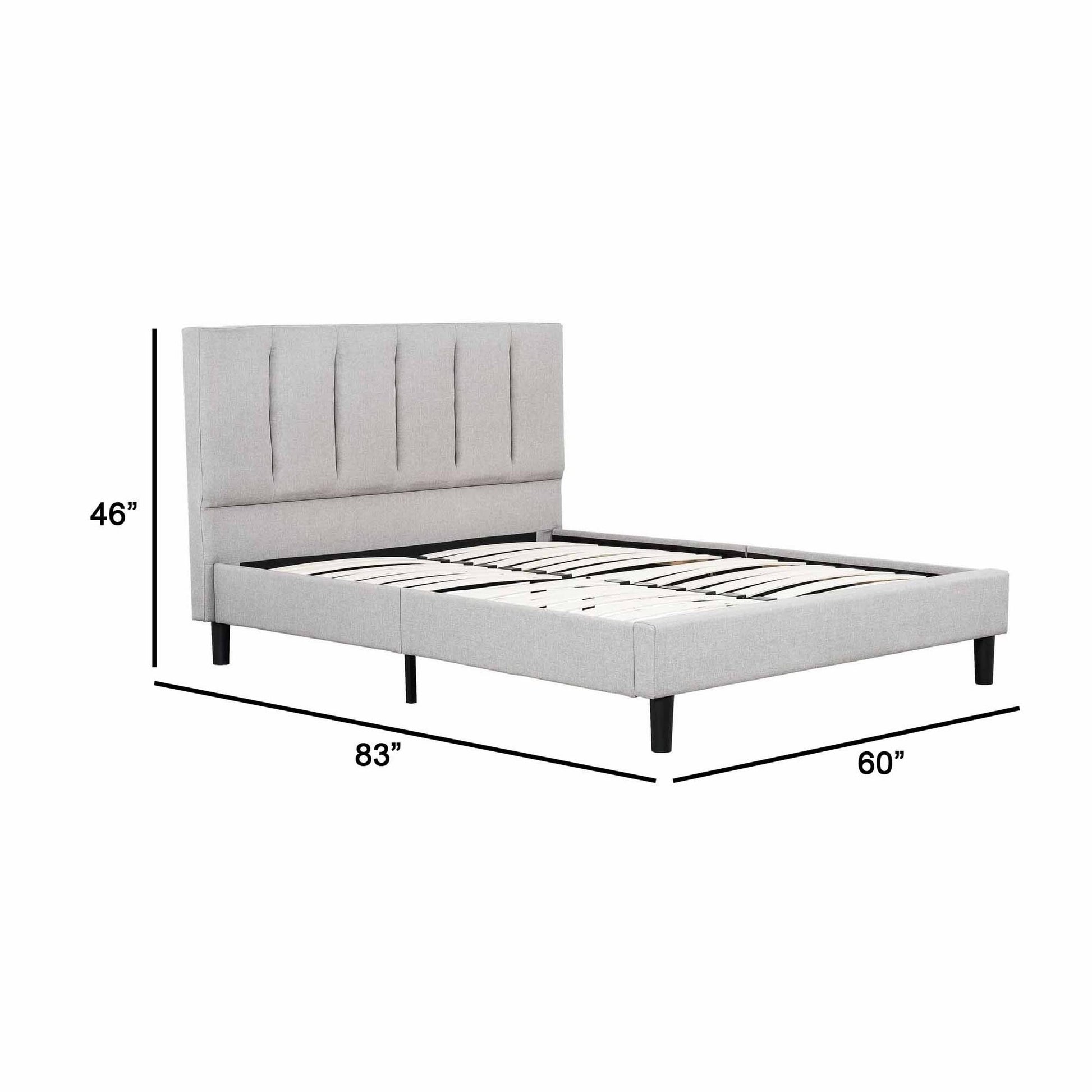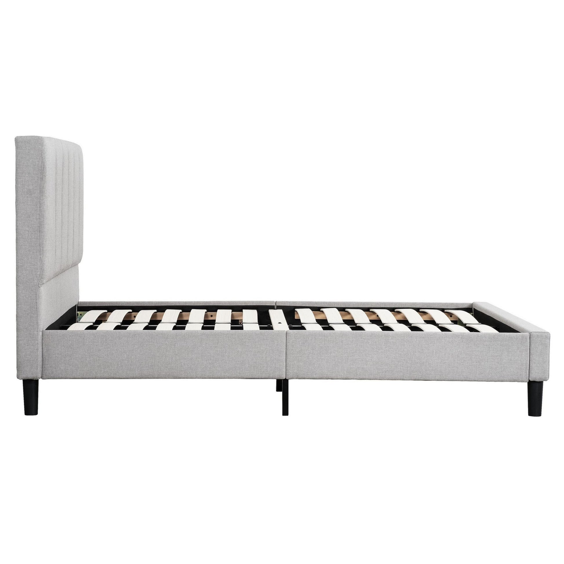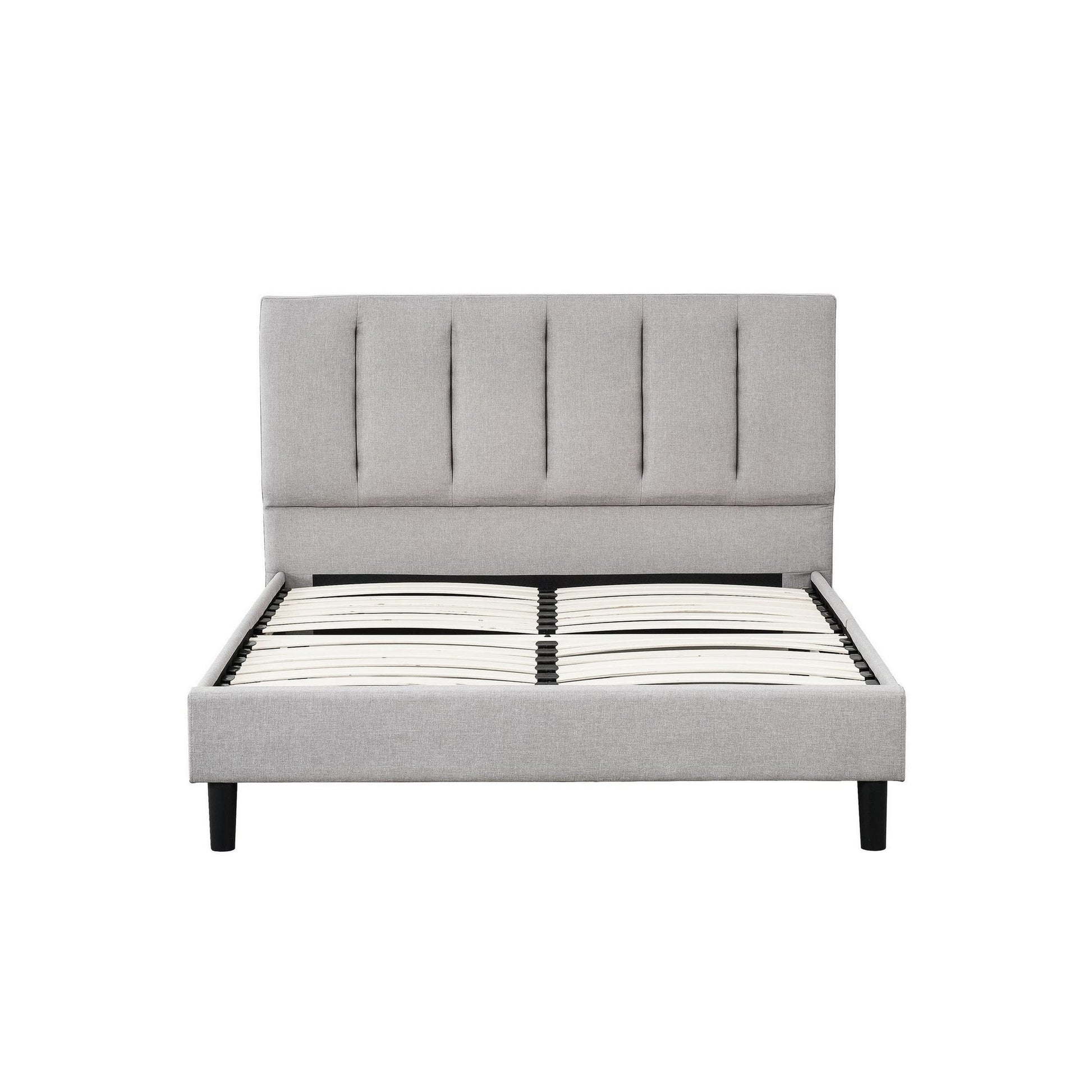 Heli Full Bed, Gray Linen Upholstered Frame, Vertical Tufted Headboard