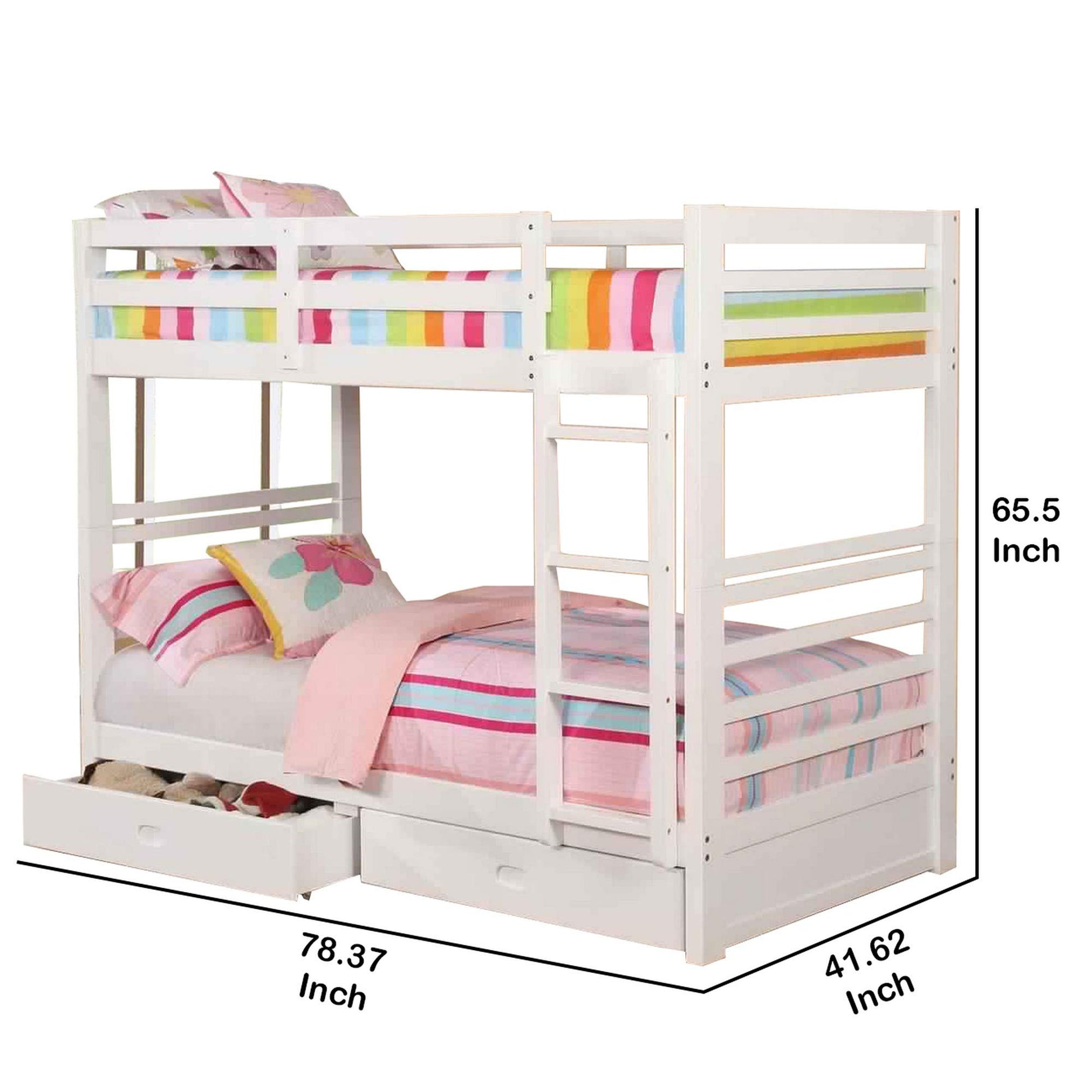- Ladder attached for easy access to top bunk.Flush mount pull for easy access