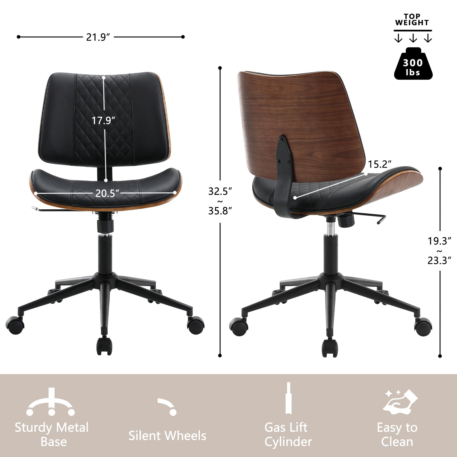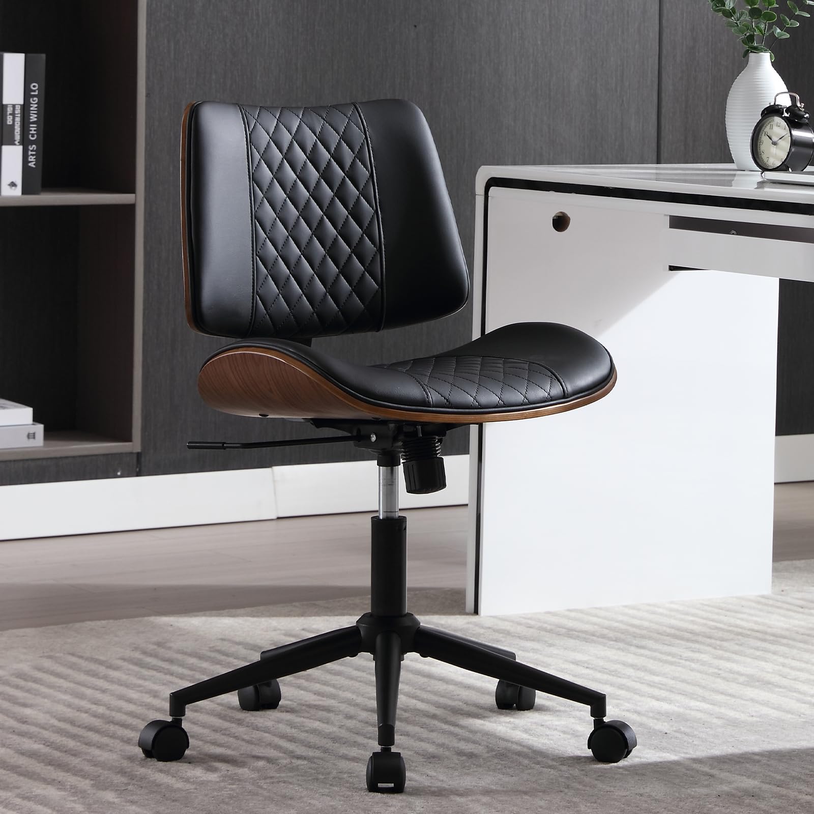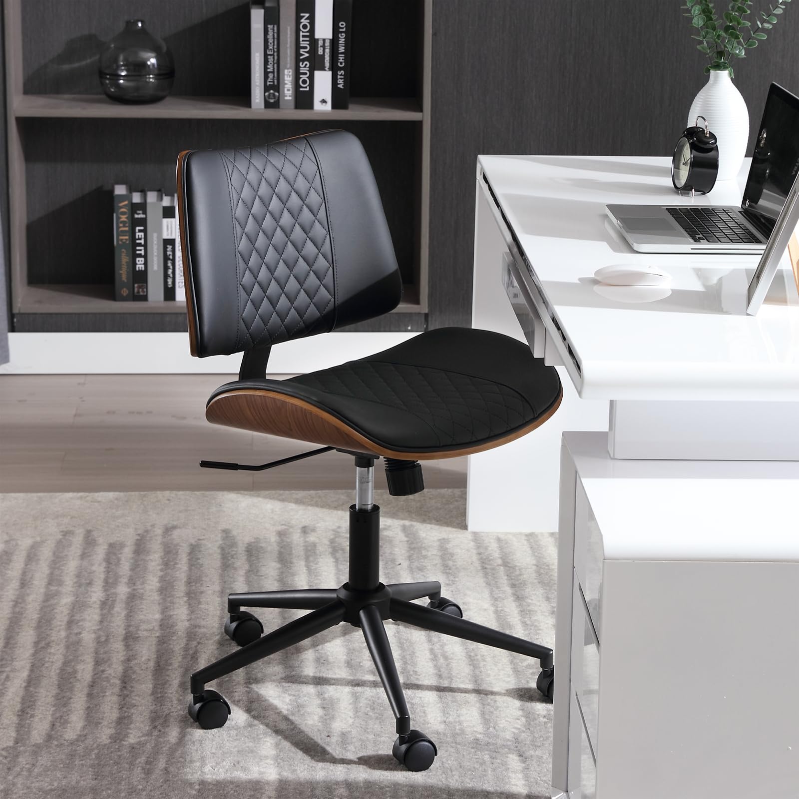 - Premium PU Leather & Modern Walnut Style This armless office chair is made of smooth PU material, ensuring breathability and easy cleaning with a cloth. It’s also waterproof and wear-resistant. It features a modern design with a stylish curved backrest, creating a sophisticated appearance that enhances the ambiance of your home/office. It is perfect for office, meeting, study room, and bedroom. Please note that the product color may vary slightly under different lighting conditions.