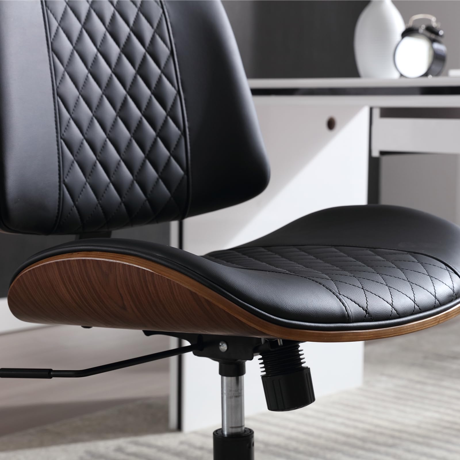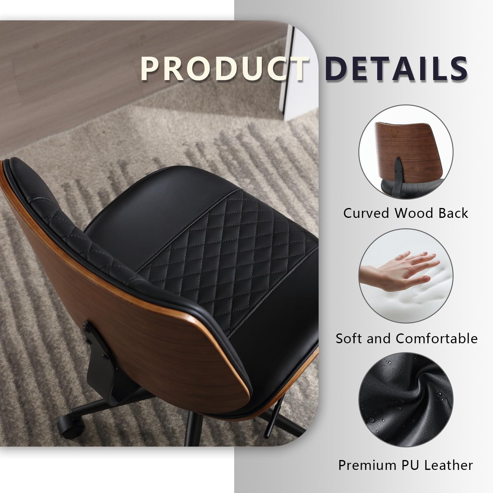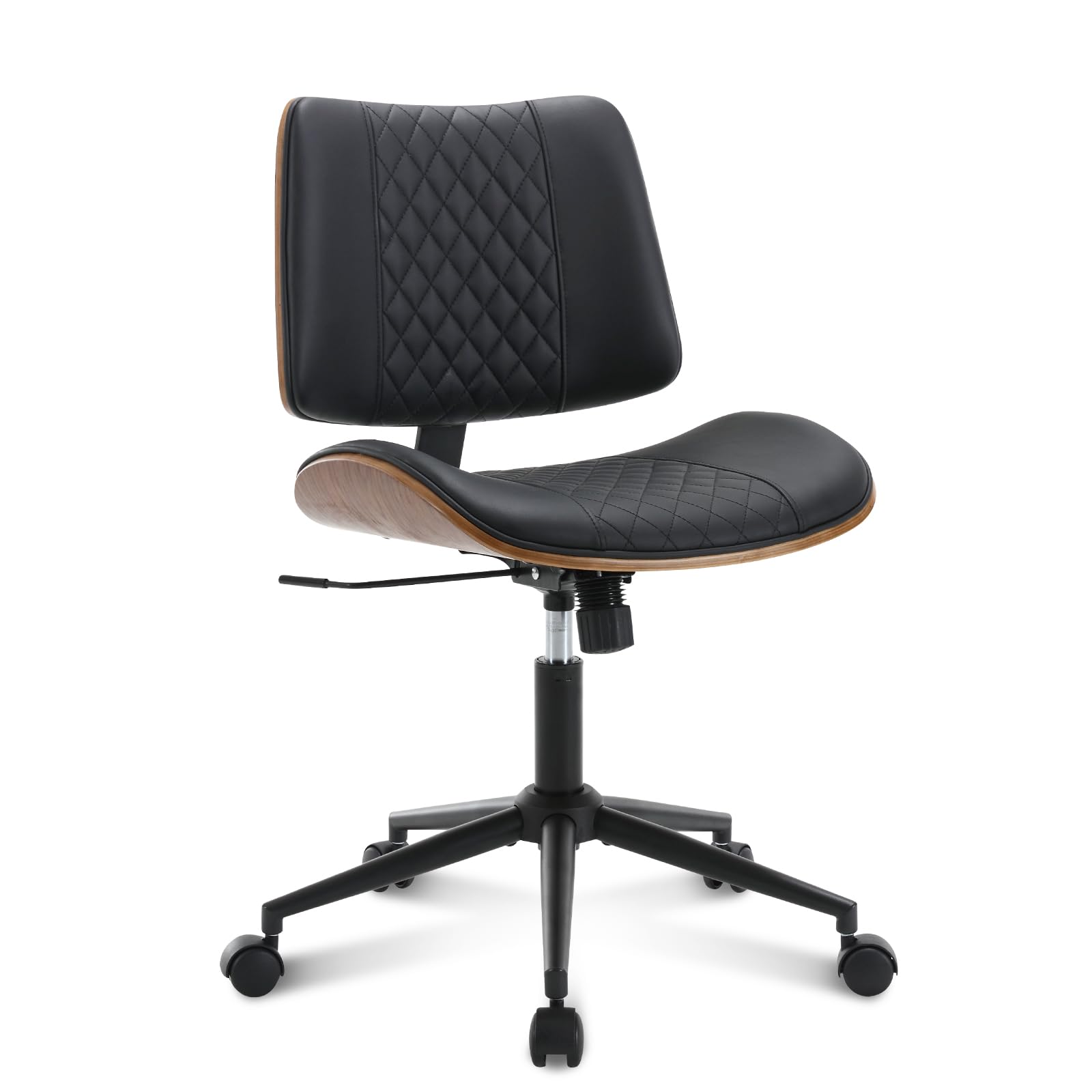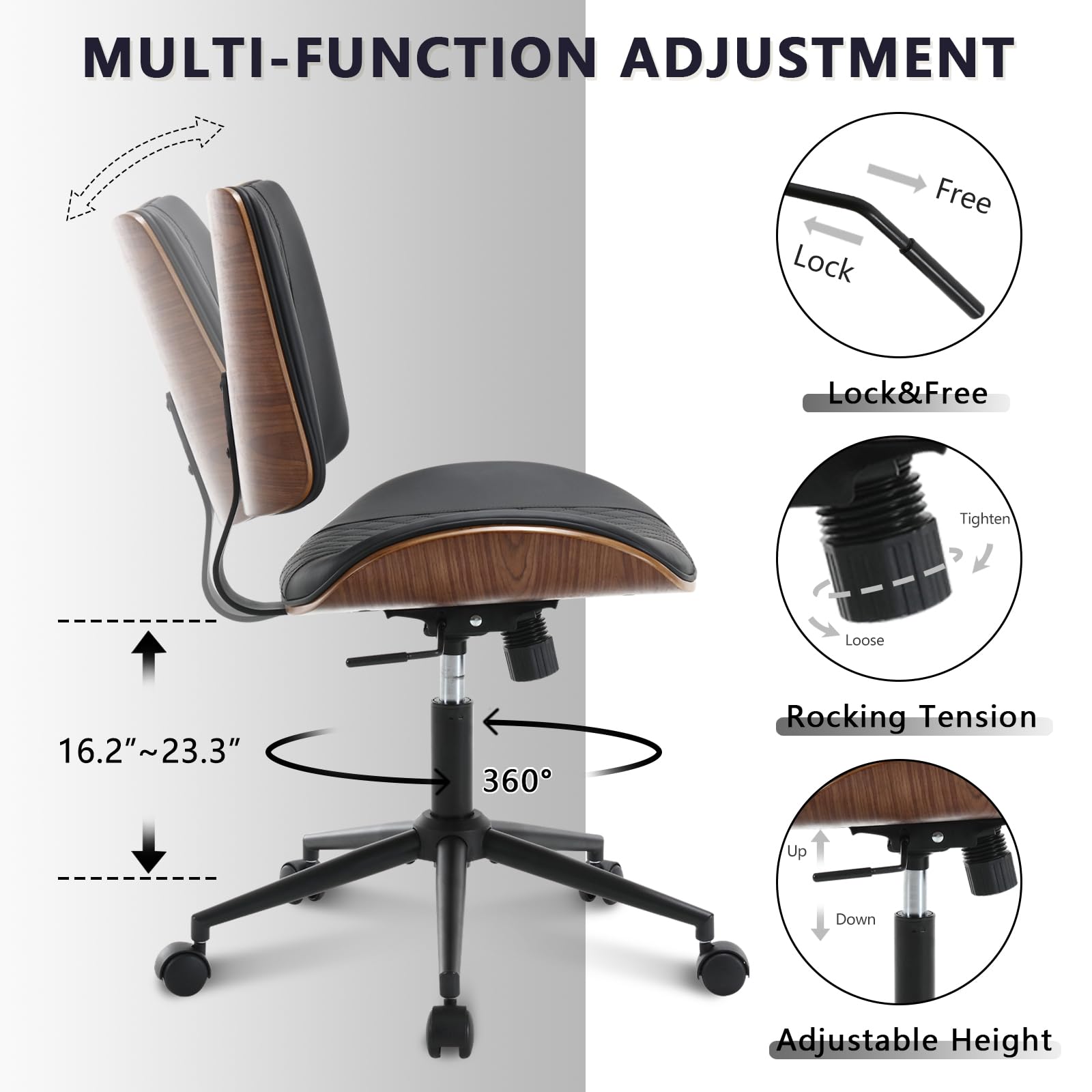 - Premium PU Leather & Modern Walnut Style This armless office chair is made of smooth PU material, ensuring breathability and easy cleaning with a cloth. It’s also waterproof and wear-resistant. It features a modern design with a stylish curved backrest, creating a sophisticated appearance that enhances the ambiance of your home/office. It is perfect for office, meeting, study room, and bedroom. Please note that the product color may vary slightly under different lighting conditions.
