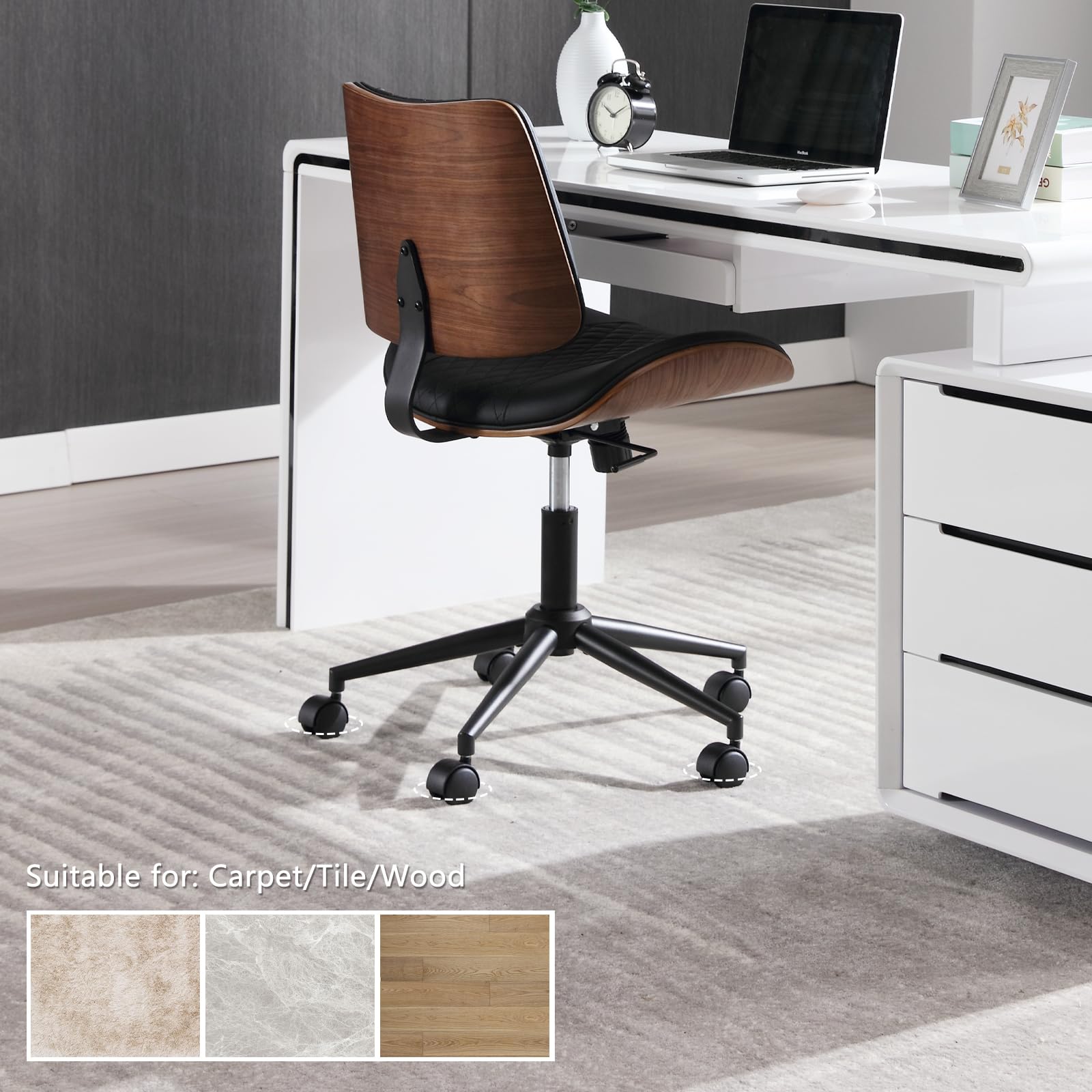 Office Chair No Arms with Wheels, Adjustable Height Small Desk Chair, PU Leather Mid