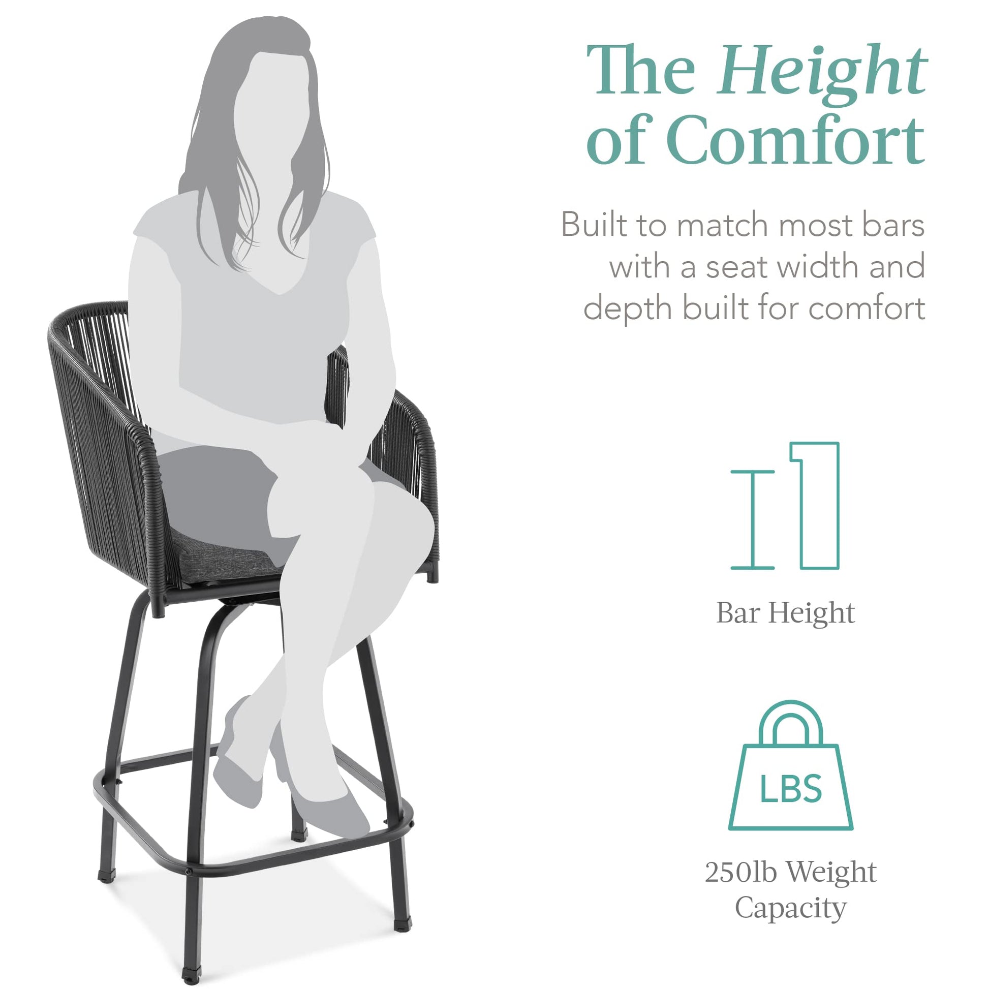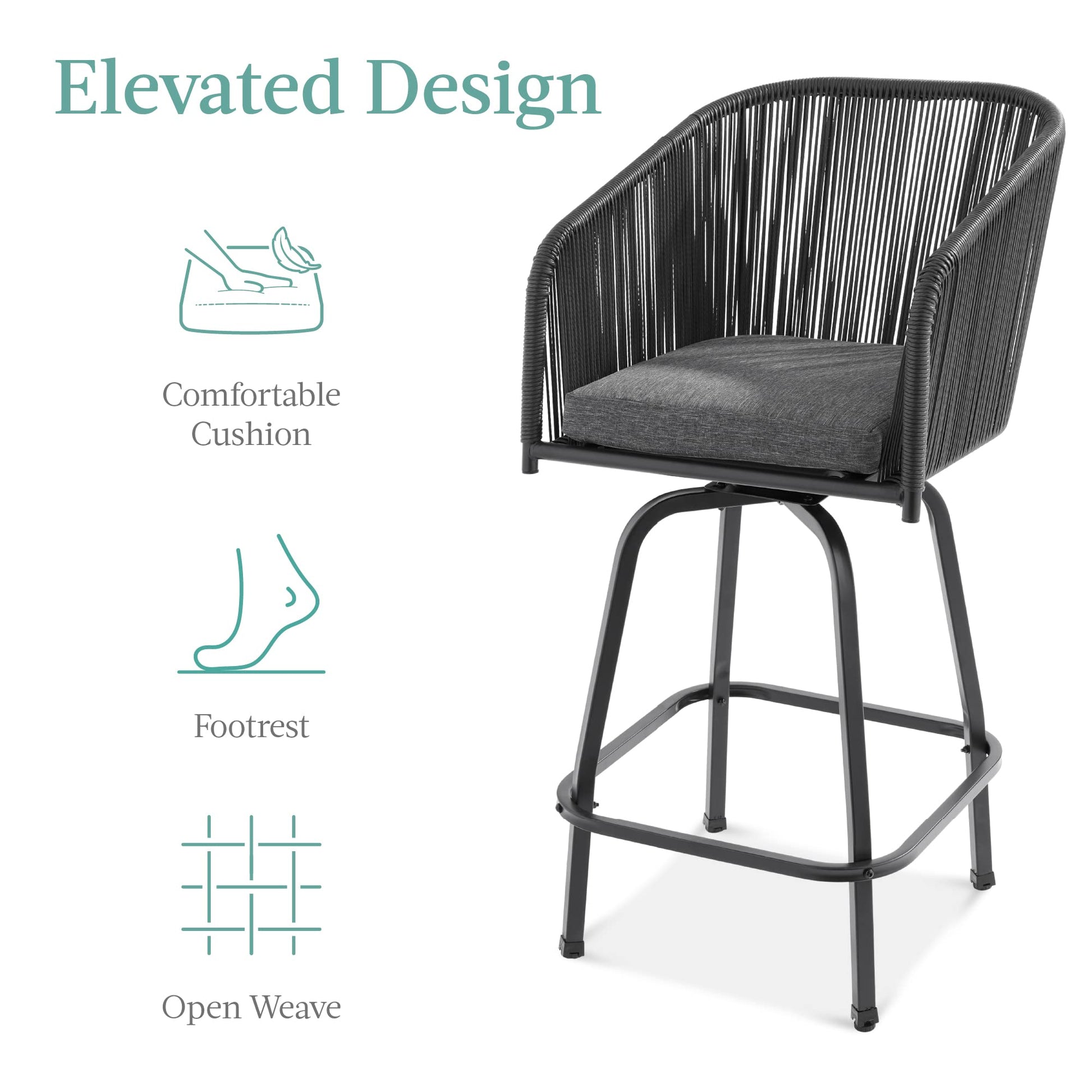 - ELEVATED DESIGN: The bar-height legs come with a built-in support bar that doubles as a footrest for your comfort. The open weave allows for a cooling cross-breeze