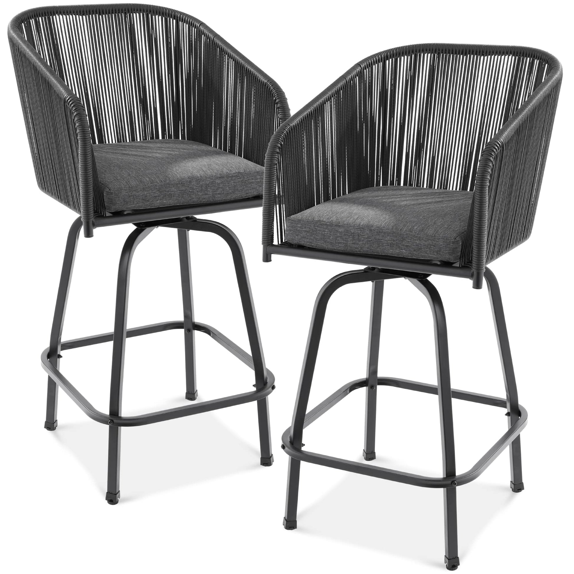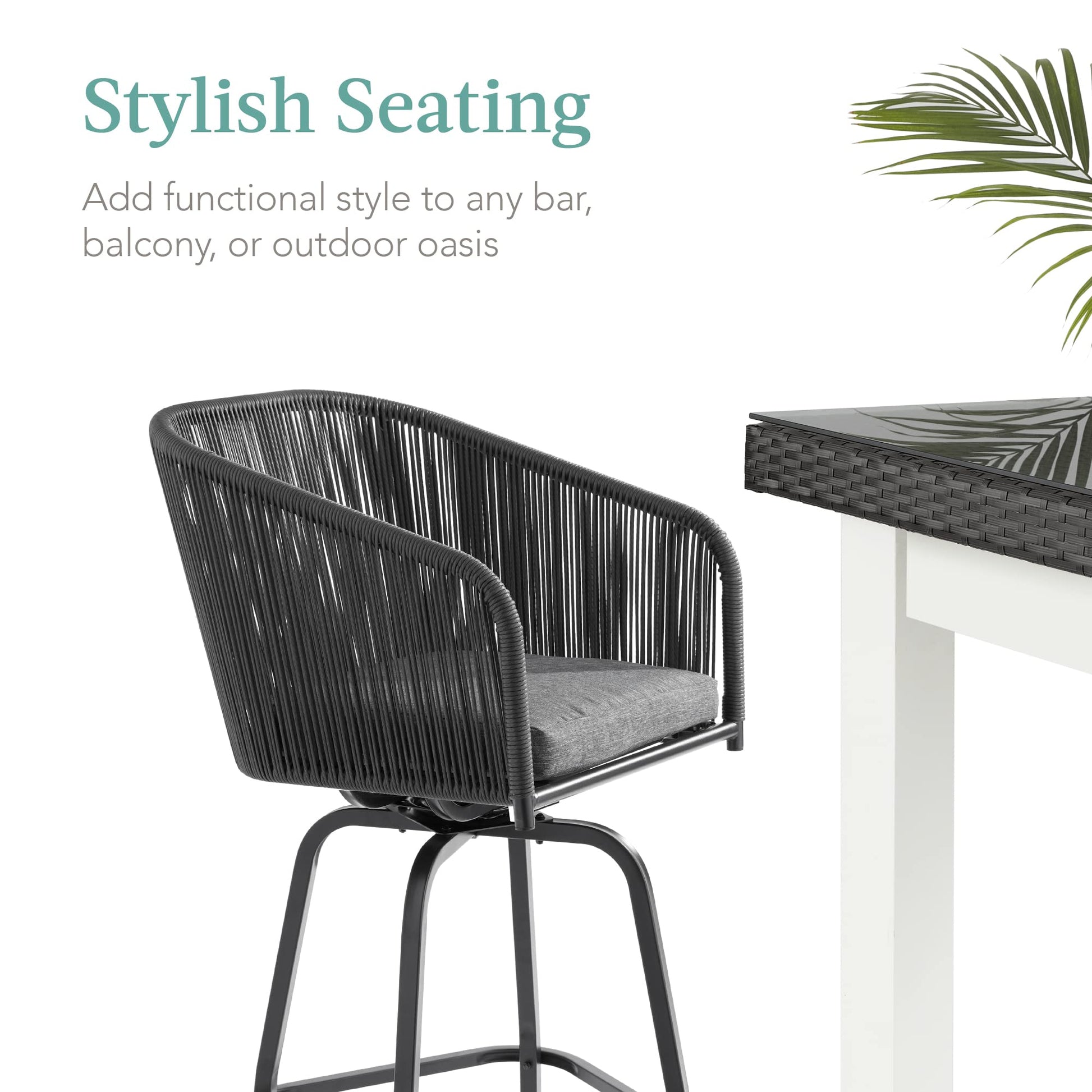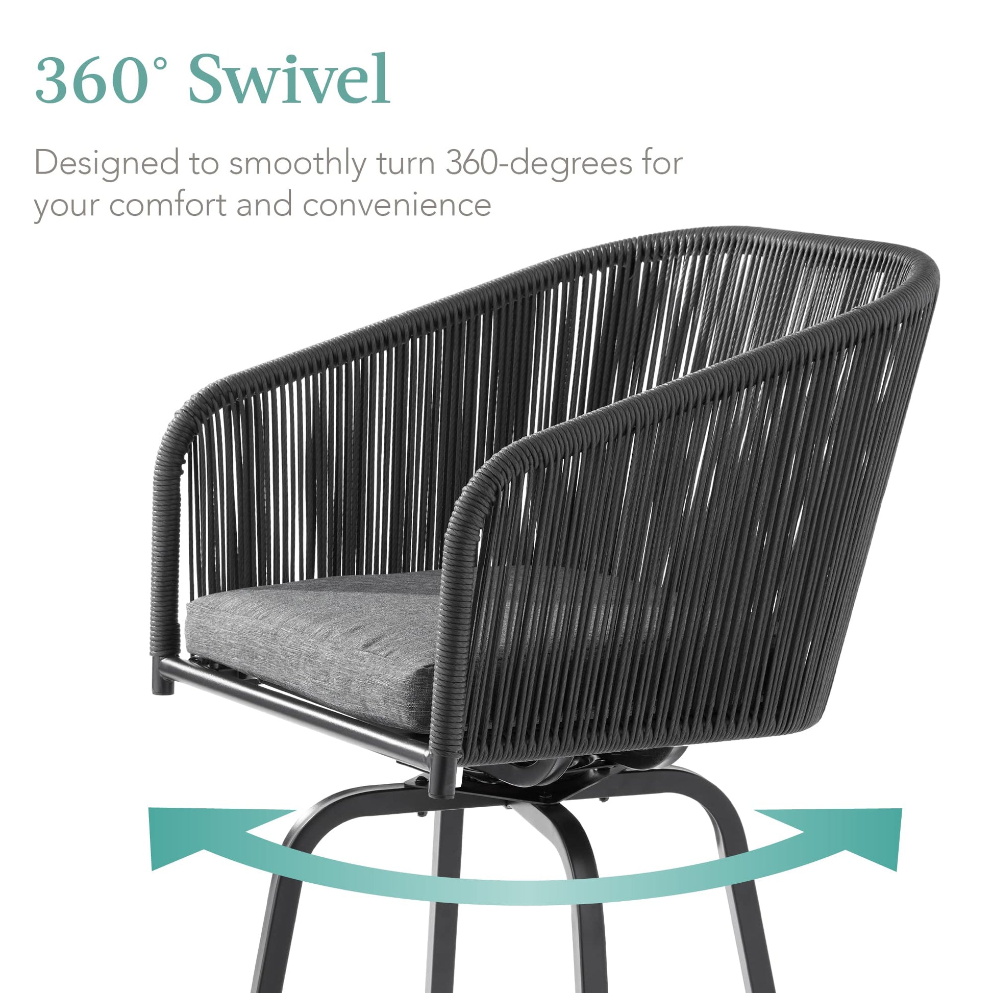 Set of 2 Woven Wicker Swivel Bar Stools, Patio Bar Height Chair for Backyard, Pool