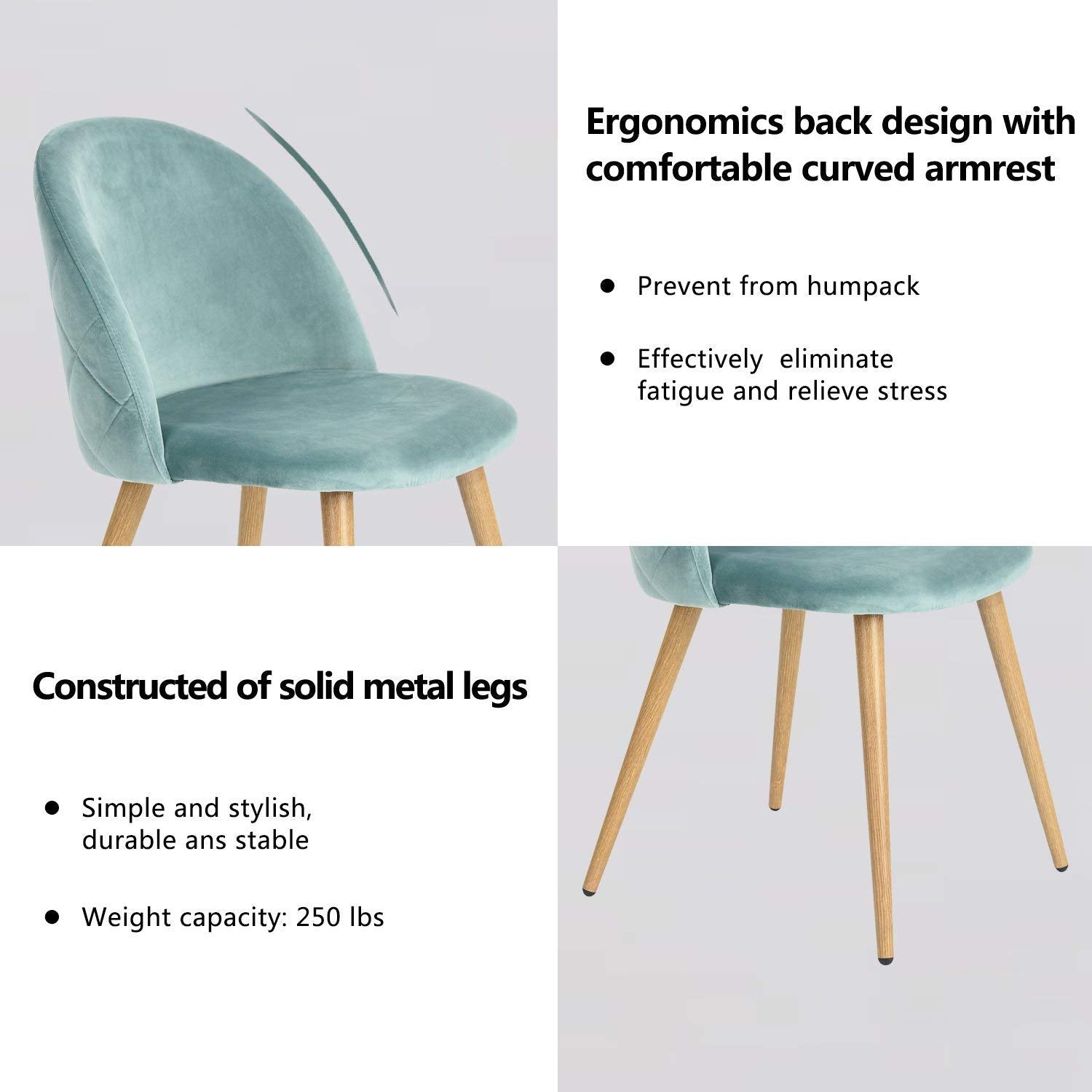 Dining Chairs Set of 2 Mid Century Modern Velvet Kitchen Chairs Wood and Metal