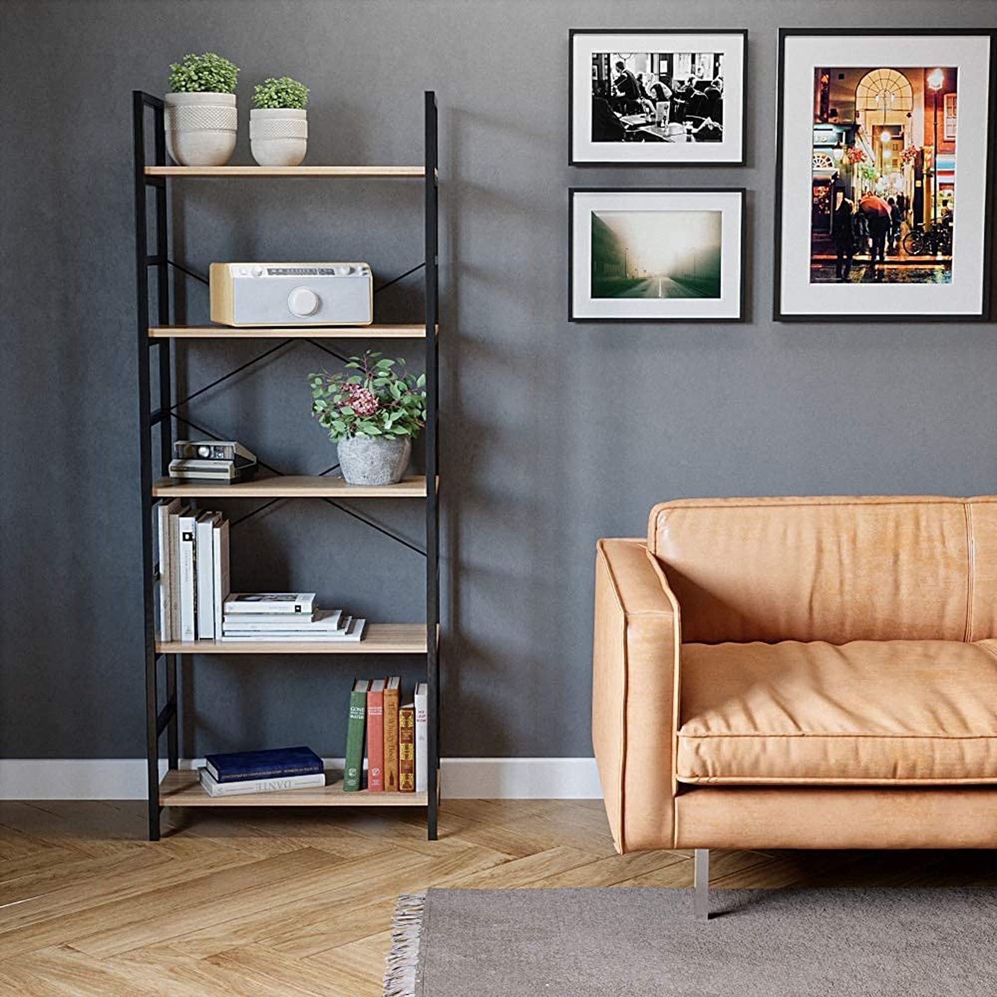 - Equipped with open steel black metal frame that gives a rustic, industrial feel; Each shelf holds up to 25 pounds, making it ideal for displaying books, decorative items, and more