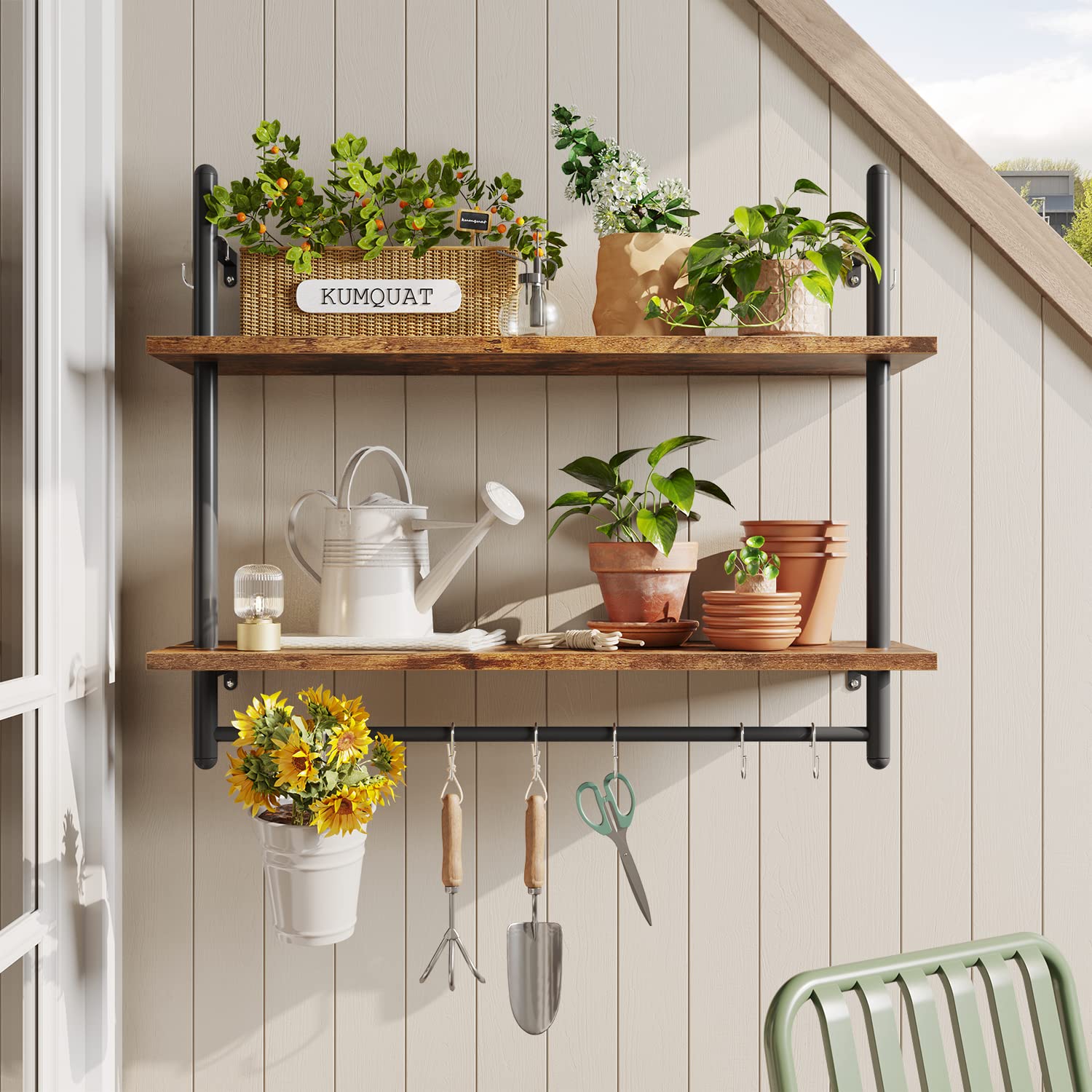 Pipe Shelf Industrial Floating Shelving Kitchen Wall-Mounted Shelf with Towel Bar Hooks