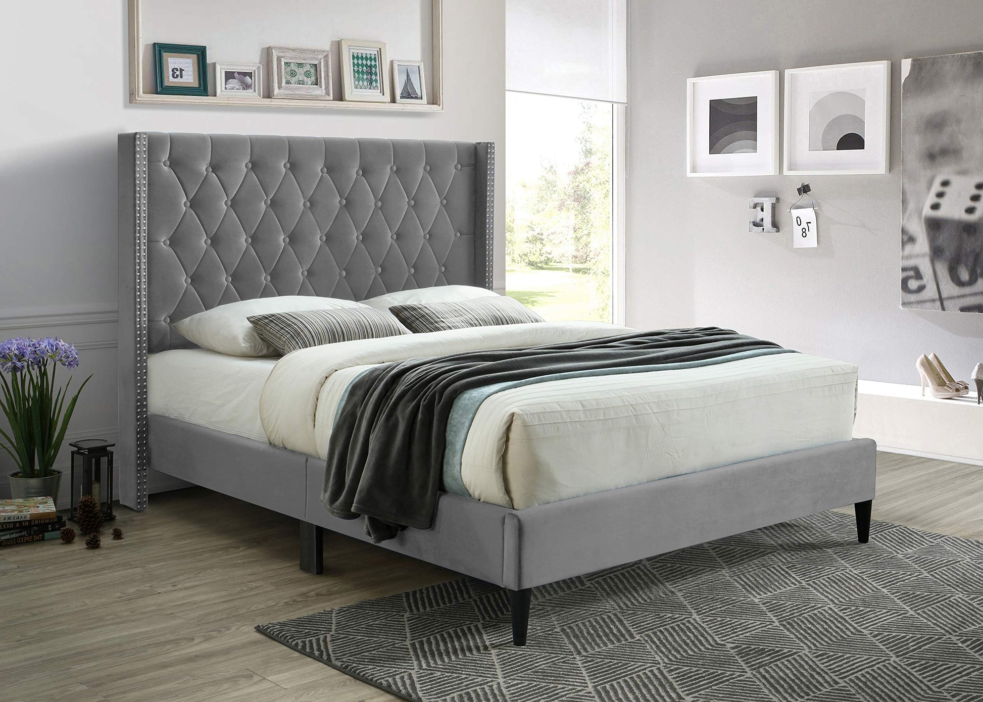 - Luxurious Plush Velvet Upholstery in Gray; Mattress not included.; Product Weight 85lbs