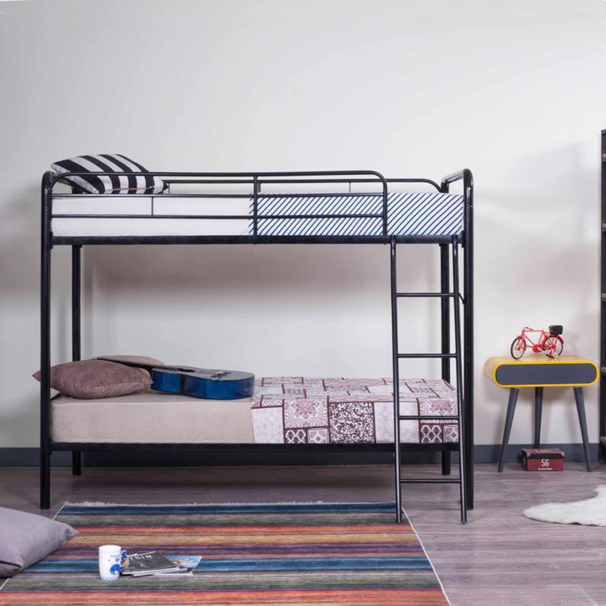Twin Over Twin Metal Bunk Bed in Black