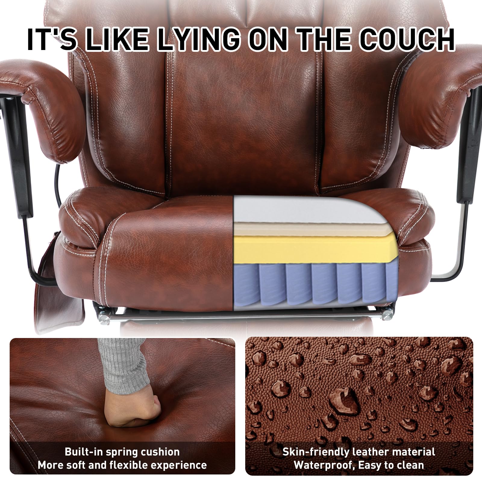 - Comfortable Office Chair: Big and tall office chair made of waterproof anf breathable leather, providing comfortable sitting experience. S oft PU leather and double padded seat cushion accommodate your entire body. With an elegant design look, home office desk chair is suitable for home, office or meeting room.