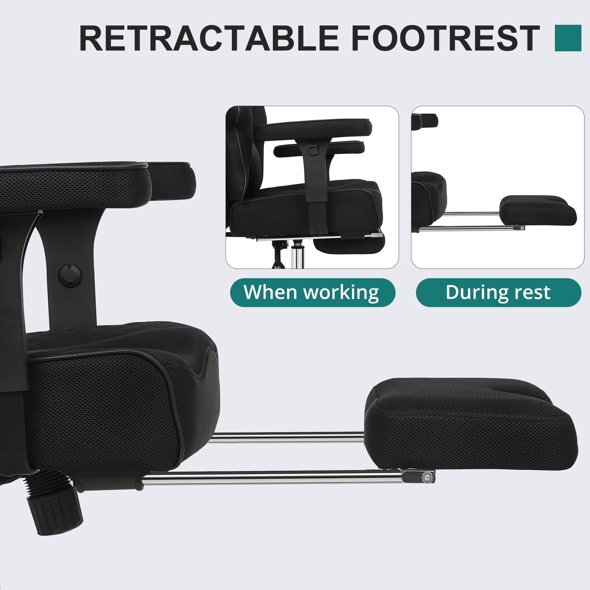 - Integrated footrest for enhanced relaxation during breaks