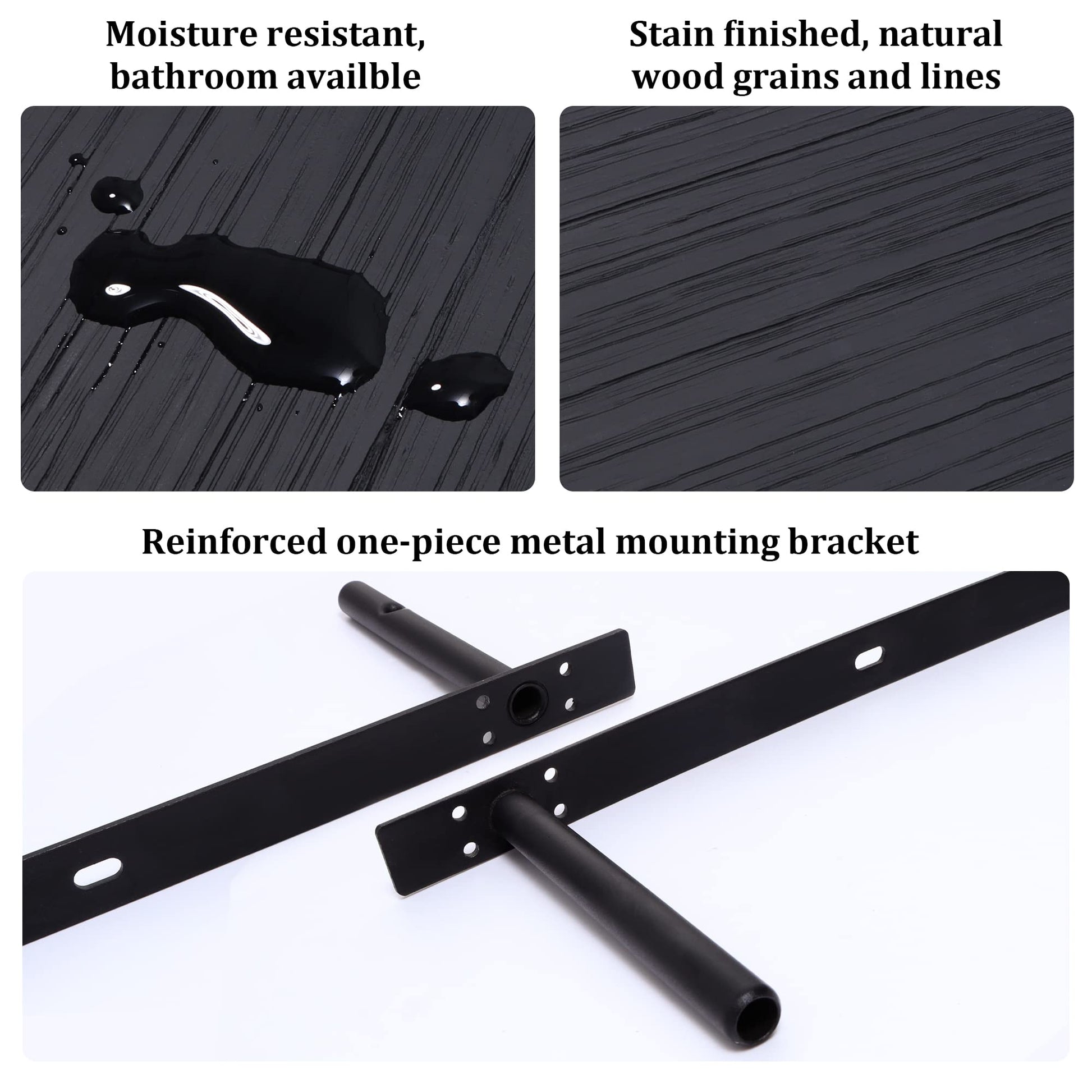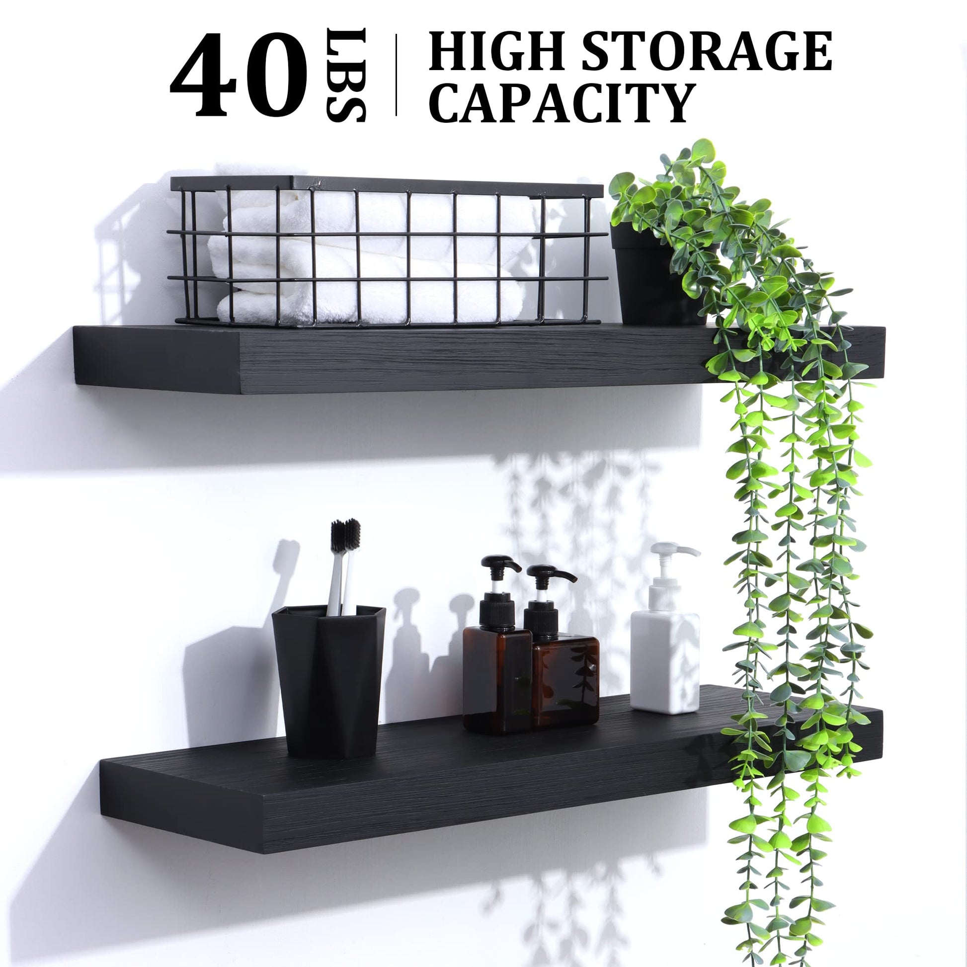 Black Floating Shelves, 8 Inch Deep Shelves for Wall, Farmhouse Rustic Wood Wall Shelves