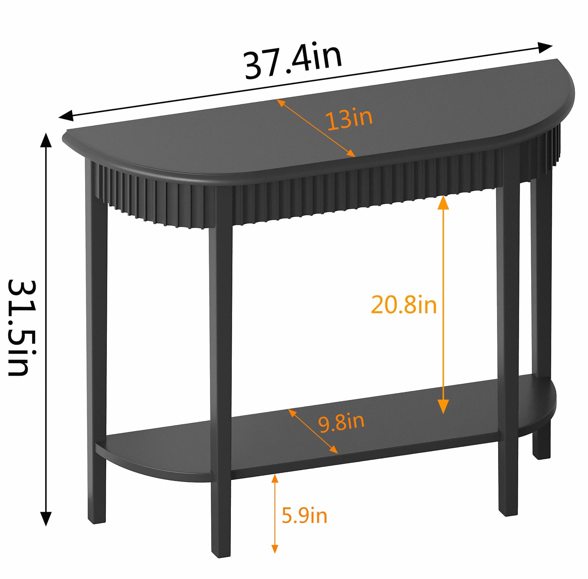 Black Half-Moon 2-Tier Console Table for Entryway