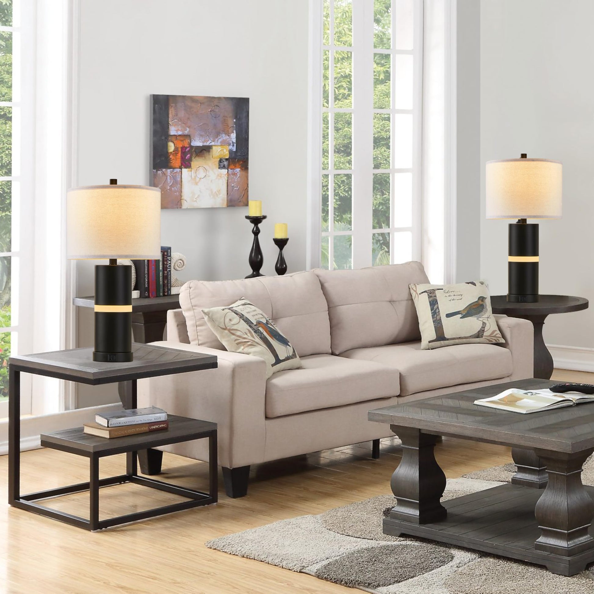 - Set of 2 matching table lamps for symmetrical nightstand styling