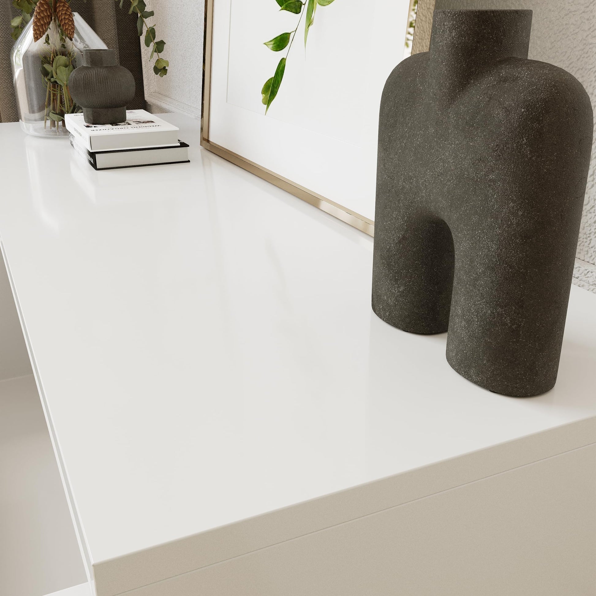 - The white dresser is made of durable MDF material with high-gloss surface craftsmanship, the white and wood dresser will provide a long life span with excellent wear resistance. Four solid wood legs and one extra middle leg ensure extra stability. Overall Load Capacity is up to 150 LBS.
