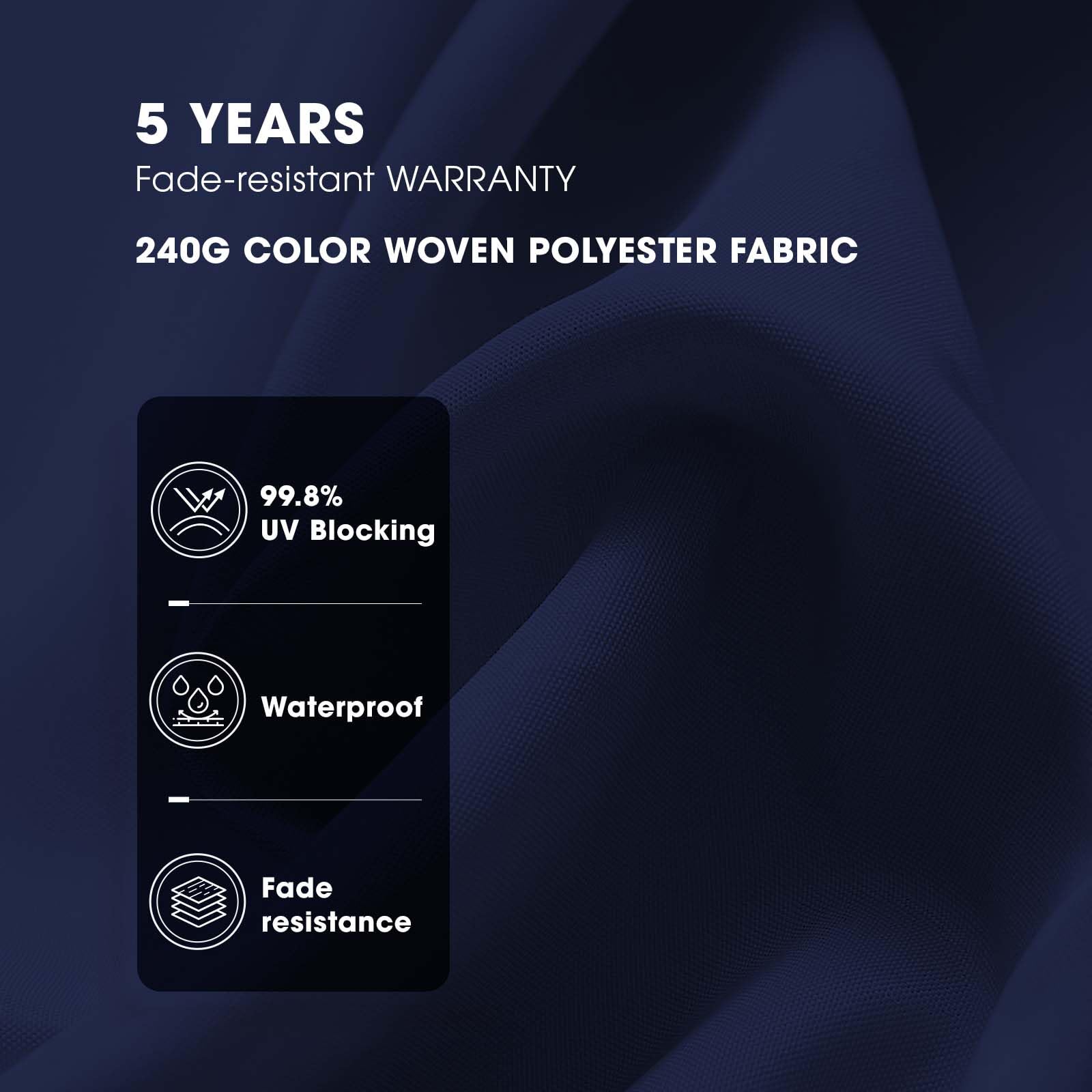 - PERFECT SHADING WITH DOUBLE SIZE: The 15 ft double-sided patio umbrella provides a set of outdoor furniture with sufficient coverage space, bringing a shady feel to a sultry afternoonThe 240g yarn-dyed polyester fabric is made from 100% polyester fabric that blocks extra sunlight and stands up to fade resistance. Besides, we proudly provide a 5-year canopy warranty against fading for this patio umbrella.