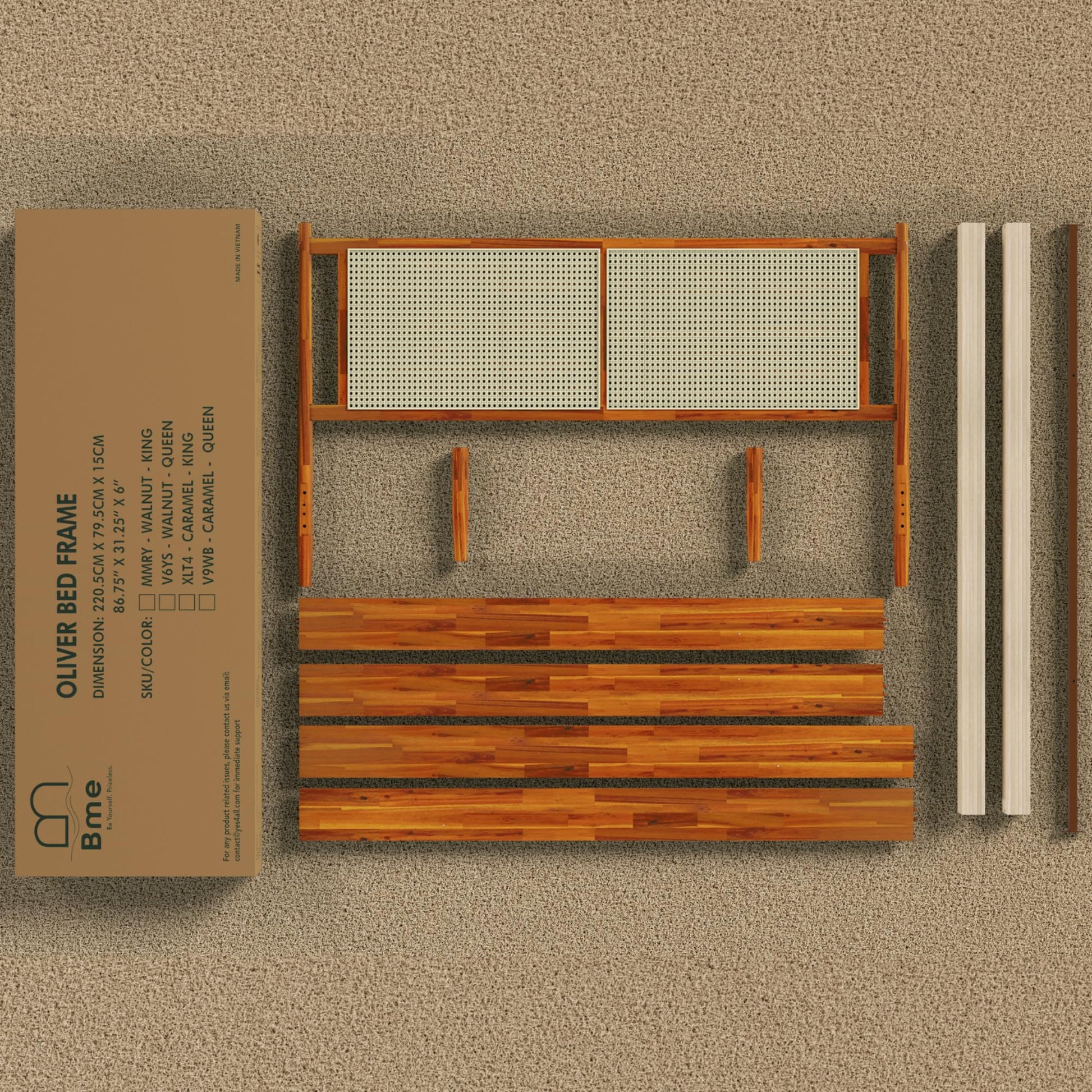 Oliver King Bed Frame and Headboard - 15-Inch Signature Design with Rattan Headboard,