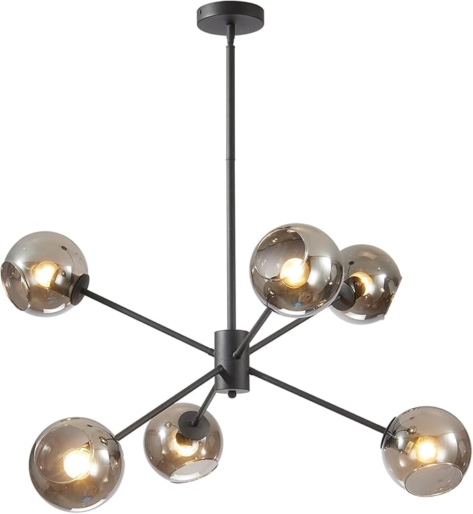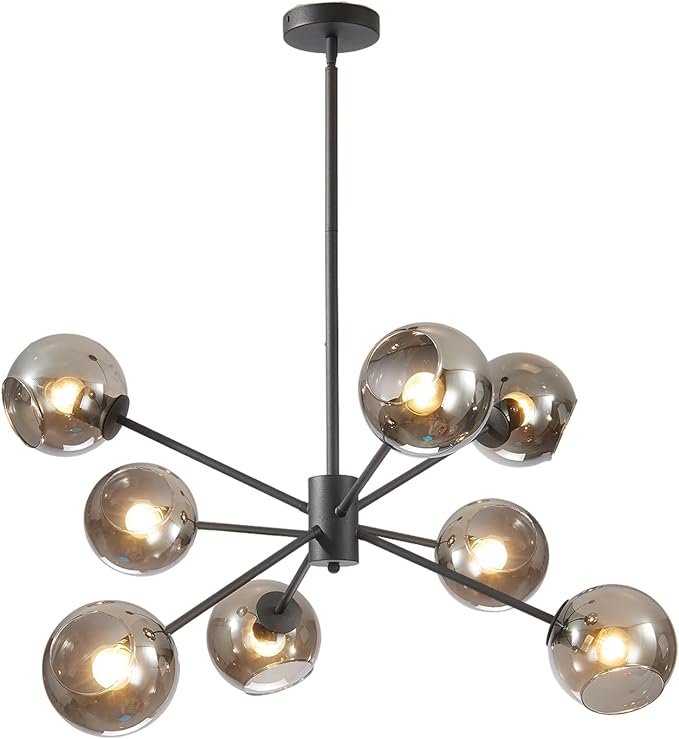 - The golden globe chandelier for dining room with 2 extension rods, the lengths are one 7.9" and one 11.8" respectively, you can adjust the hanging height to reach your request. The vintage milk glass chandelier light fixture with a durable swivel could be mounted on vaulted or sloped ceilings.