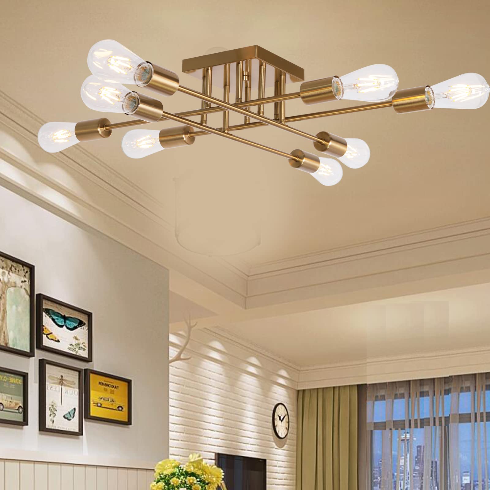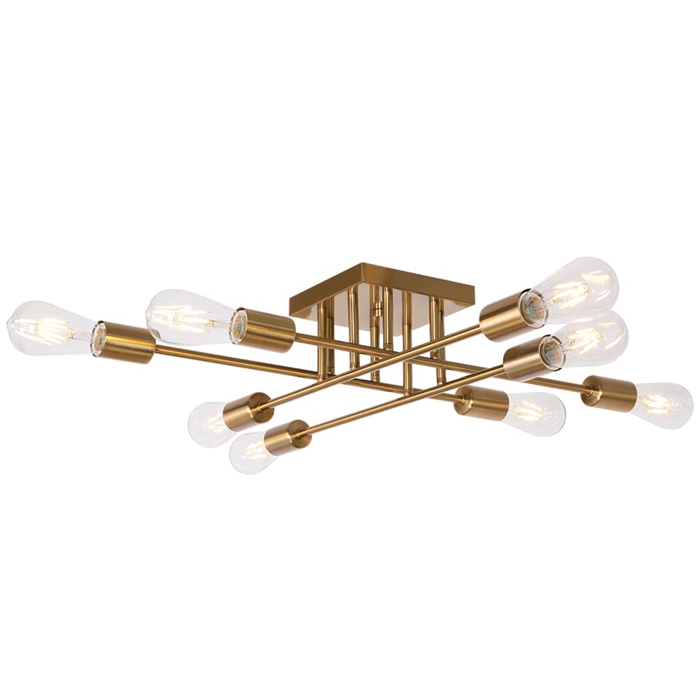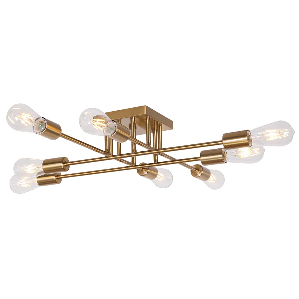 Modern Ceiling Light Brushed Brass 8 Light Mid Century Sputnik Chandelier Semi Flush