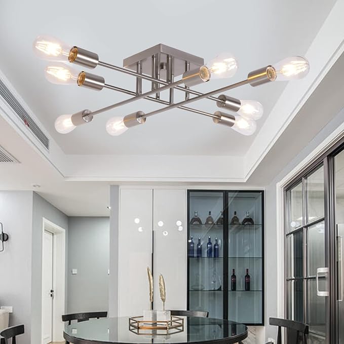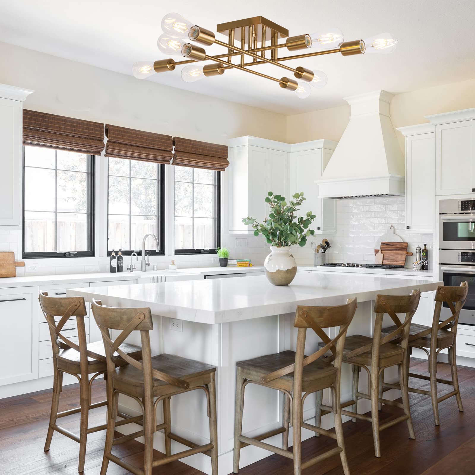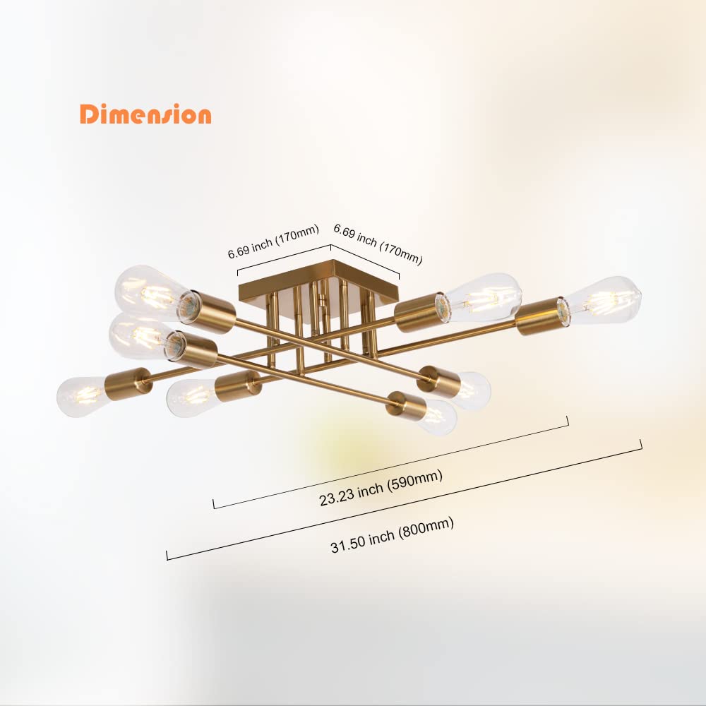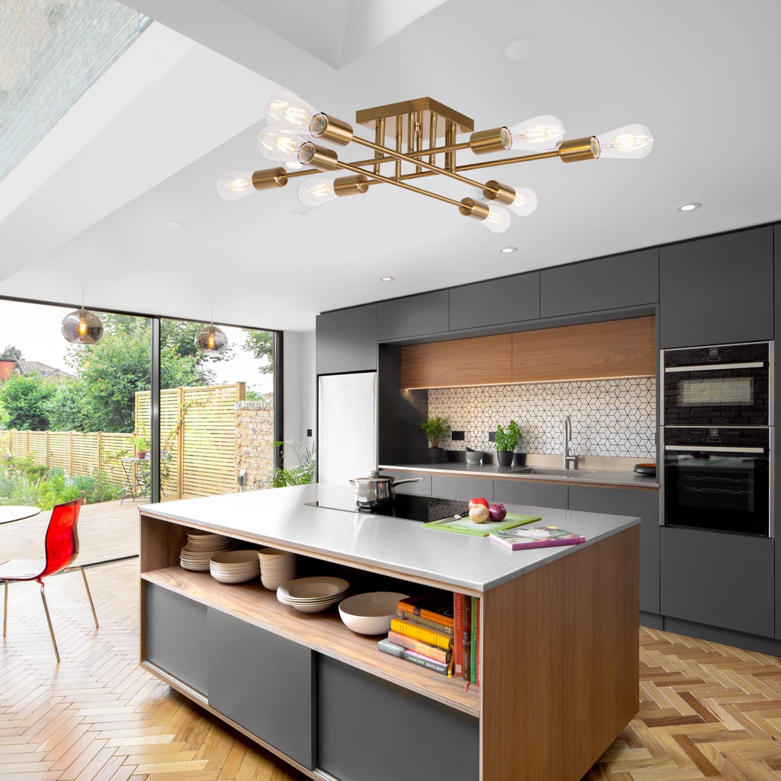 - Mid Century Modern Sputnik Flush Mount Ceiling Lighting : industrial design,bring this gold kitchen dining room flush mount light fixture ceiling different view,you can hang it anywhere you like.The modern chandelier ceiling light Fixture is perfect to install in dining room, living room, restaurant, bedroom, dinner Room, balcony, passageway, corridors, meeting room, office, bar and other places for decoration required.