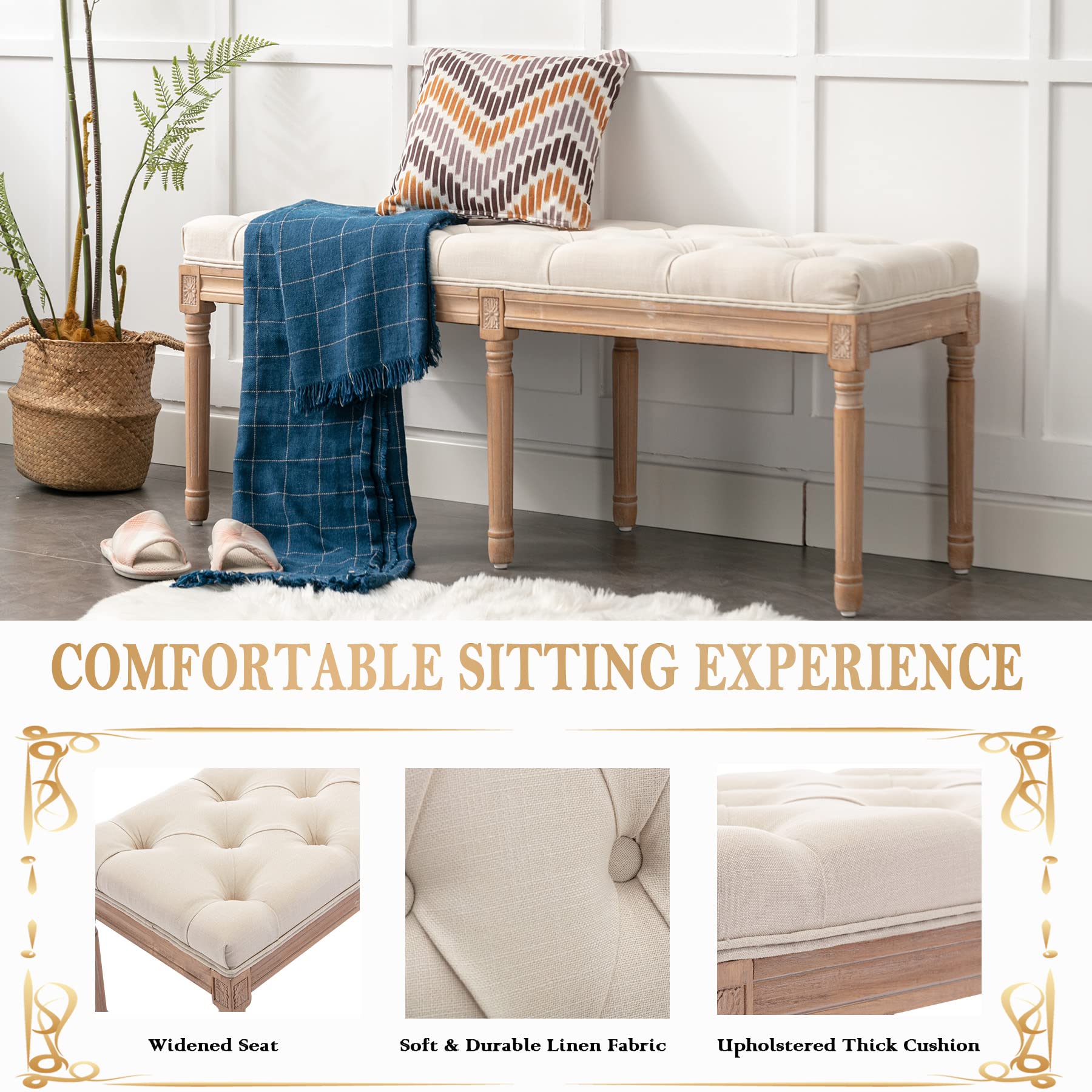 Tufted Extra-Long Entryway Bench, Vintage Bedroom Bench Upholstered