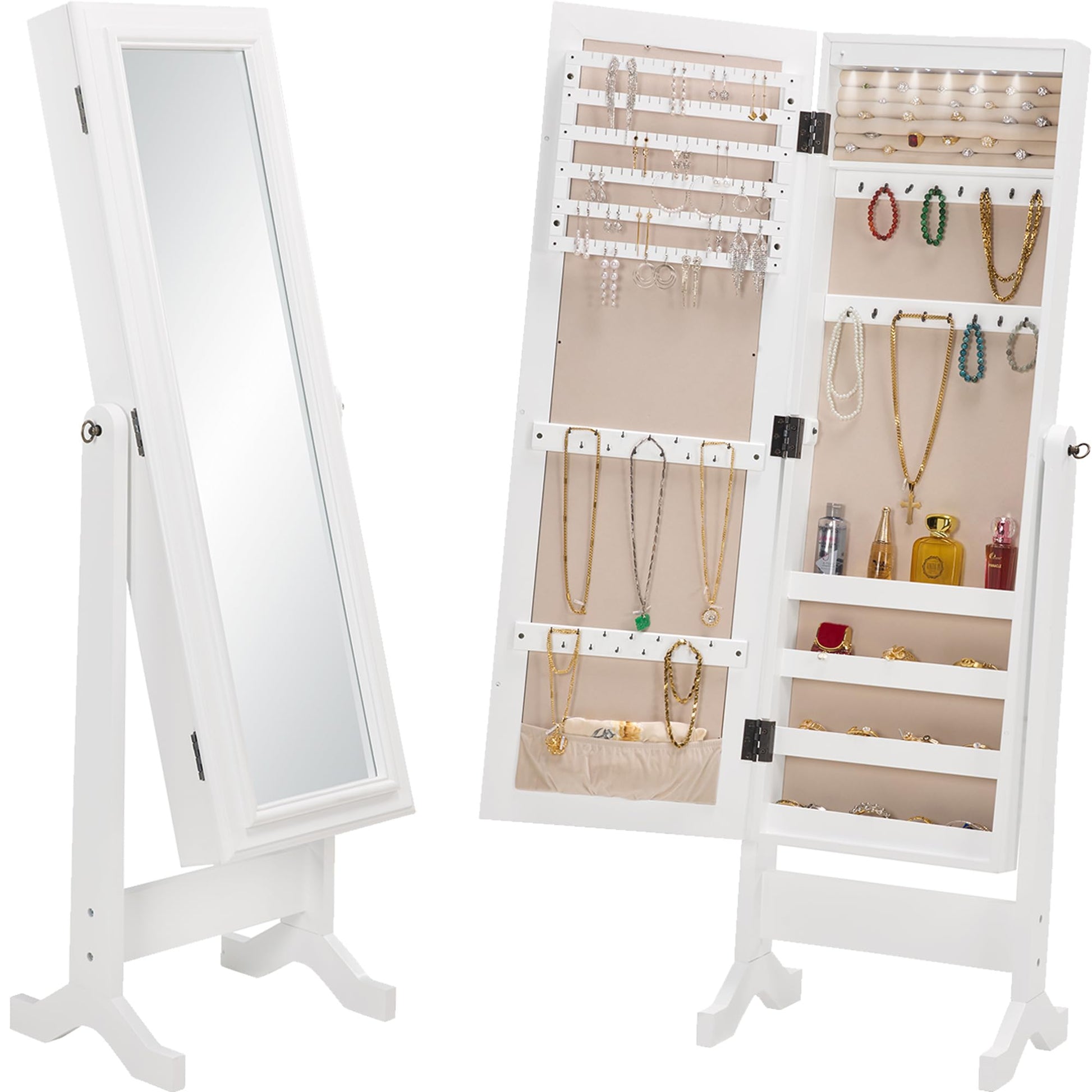 - HD FULL-LENGTH MIRROR: Enjoy the convenience of a full-length mirror with storage in this standing jewelry armoire. The extra wide HD mirror provides a clear head-to-toe view for getting ready while seamlessly integrating storage for your jewels, saving you space and enhancing your decor