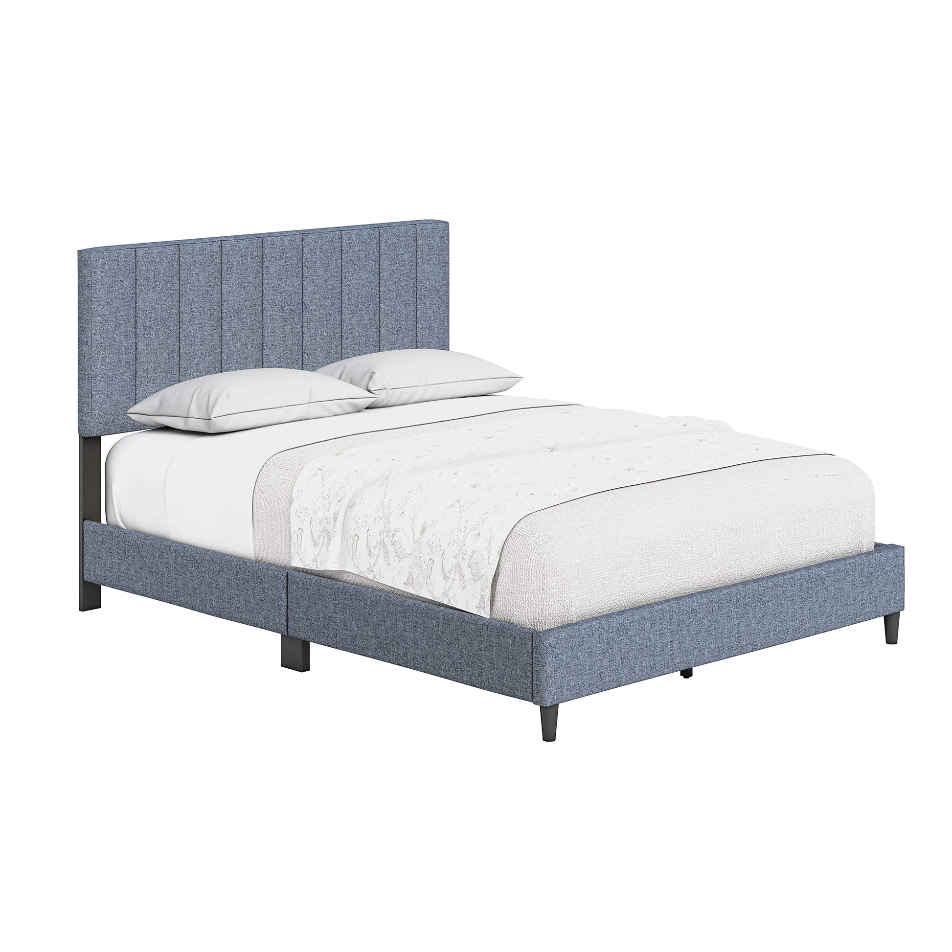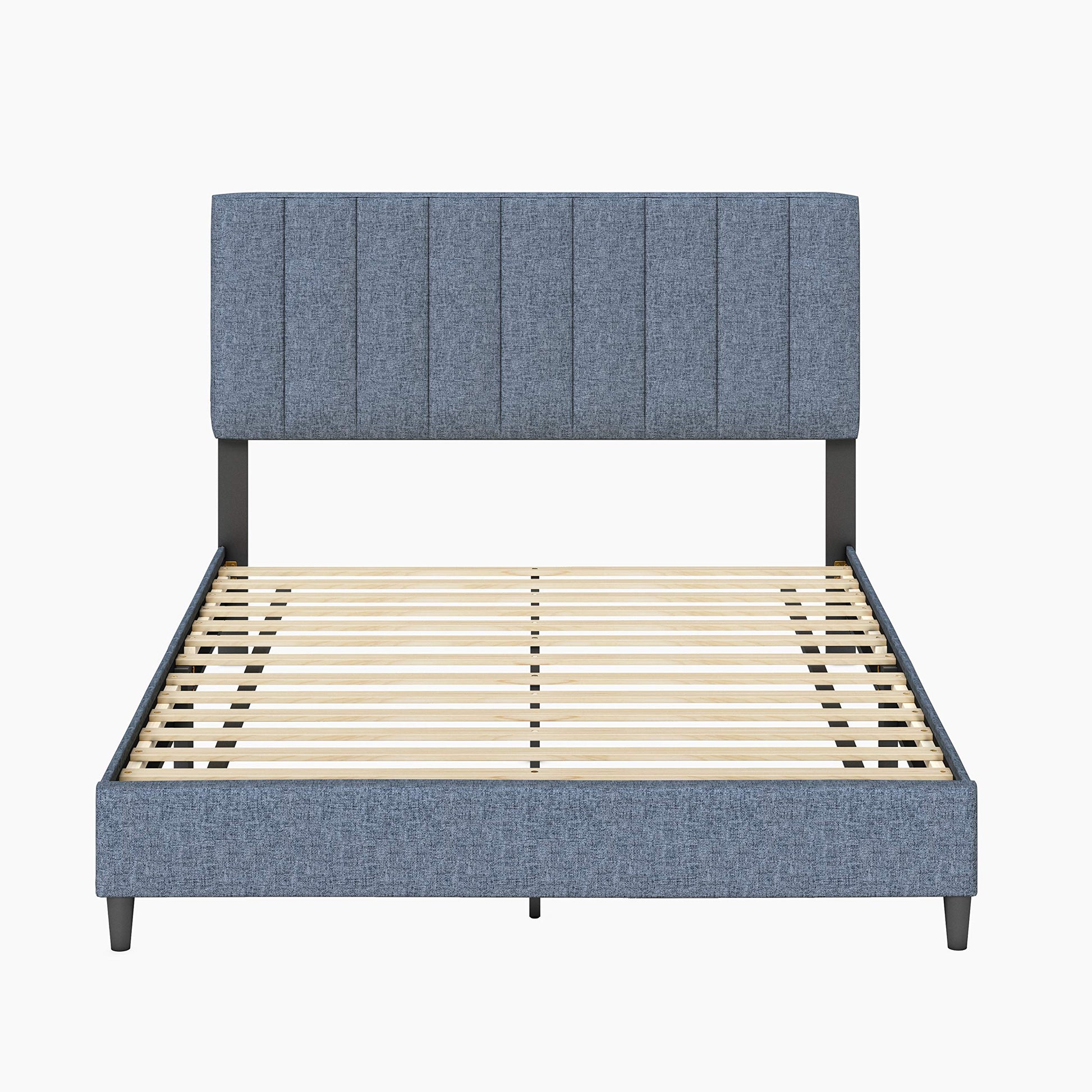 Leah Upholstered Vertical Tufted Platform Bed with Headboard and Strong Wood 13-Slat